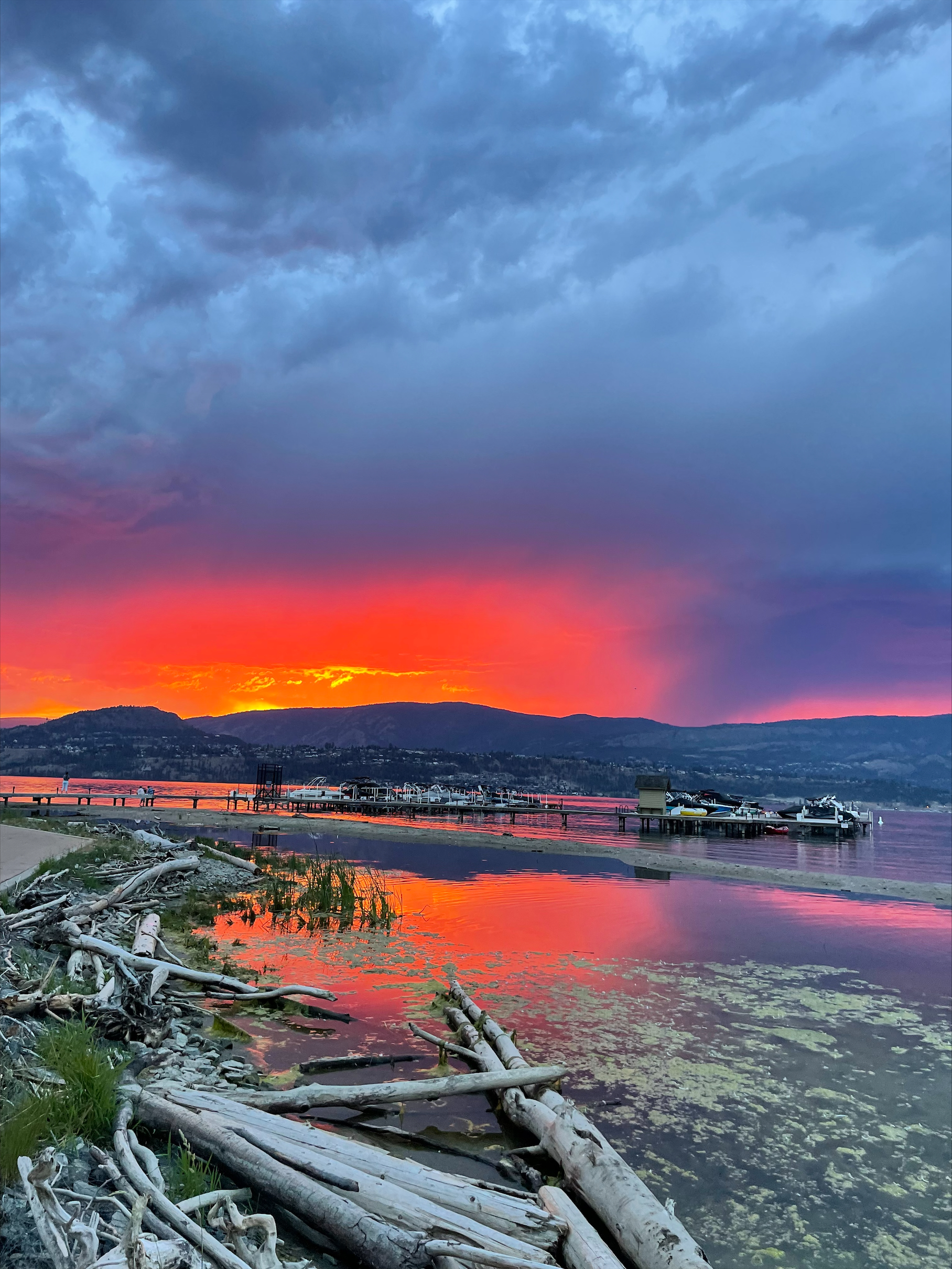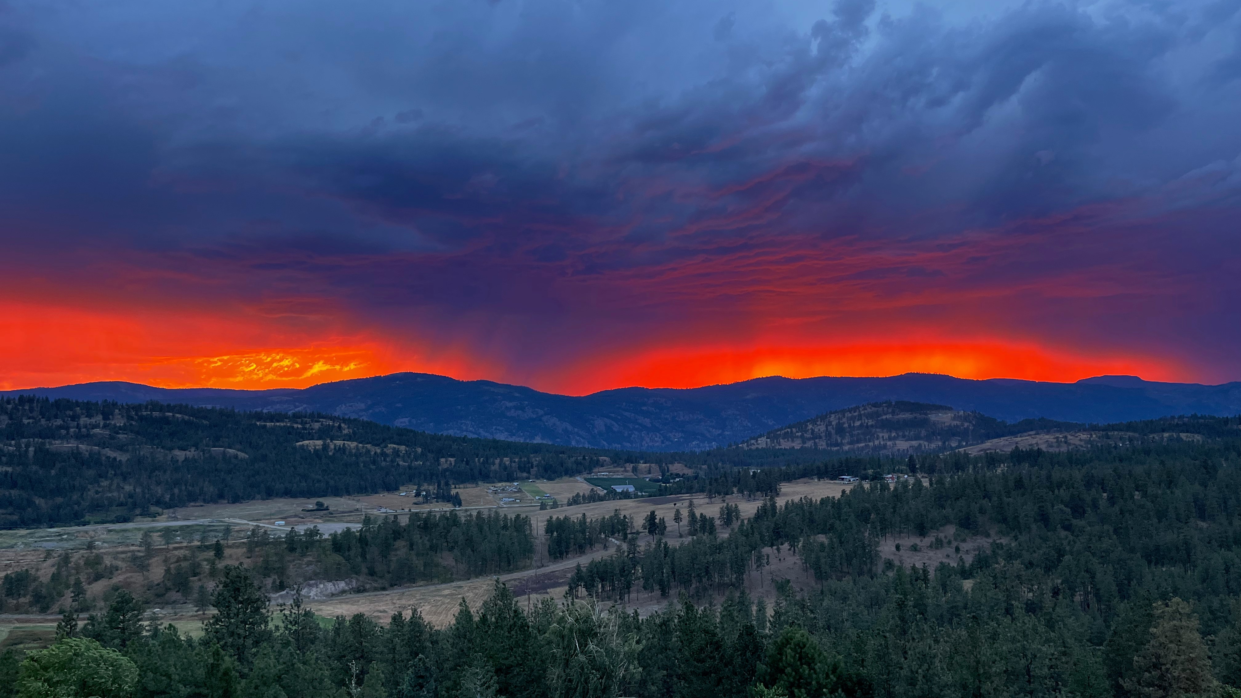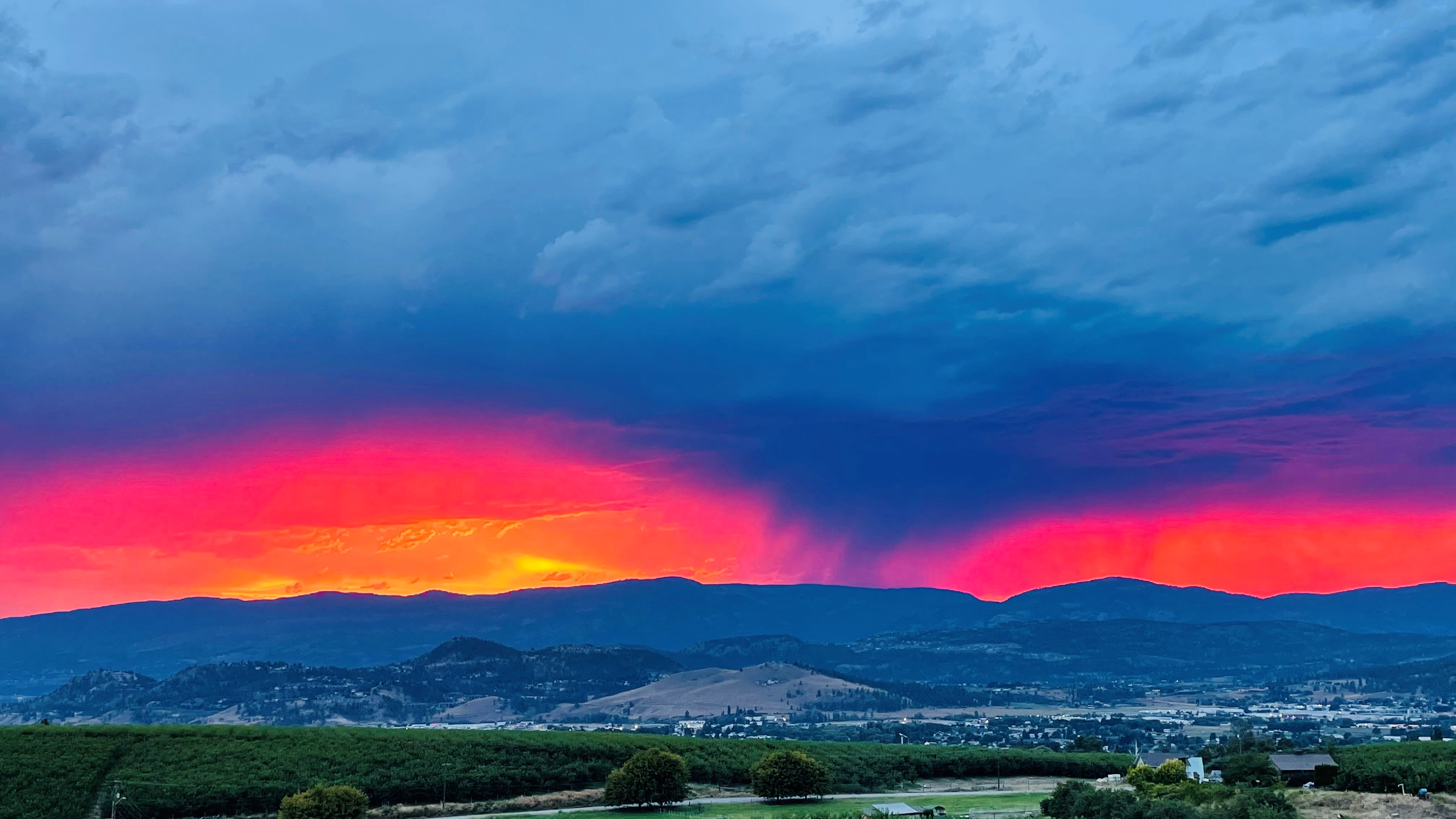 The Okanagan skies were ablaze with colour on Thursday at sunset when a thunderstorm rolled into the region.