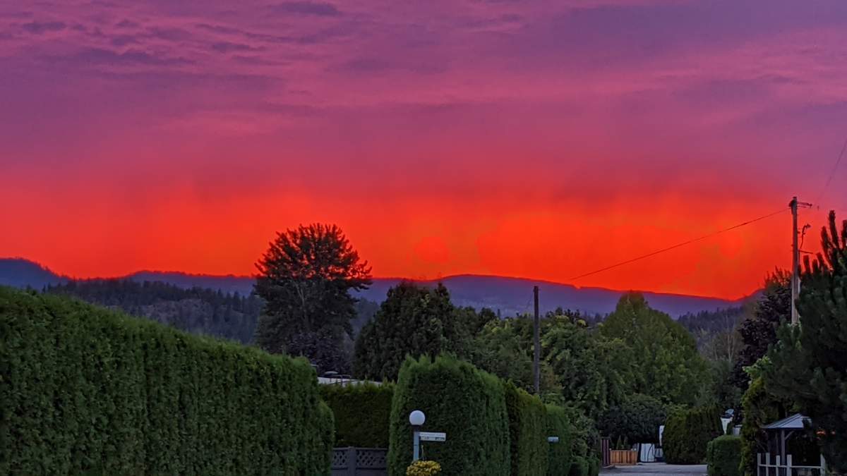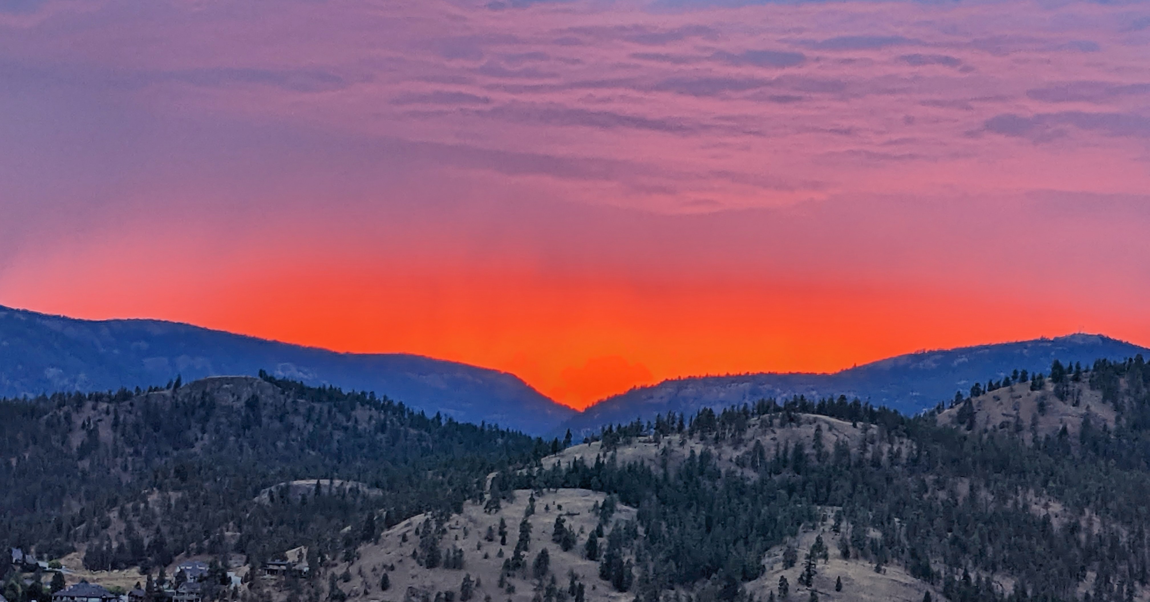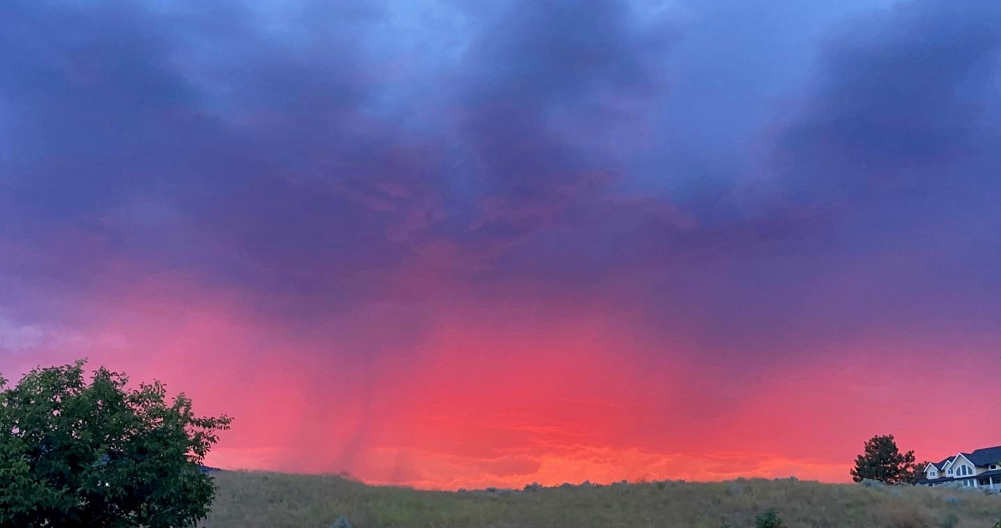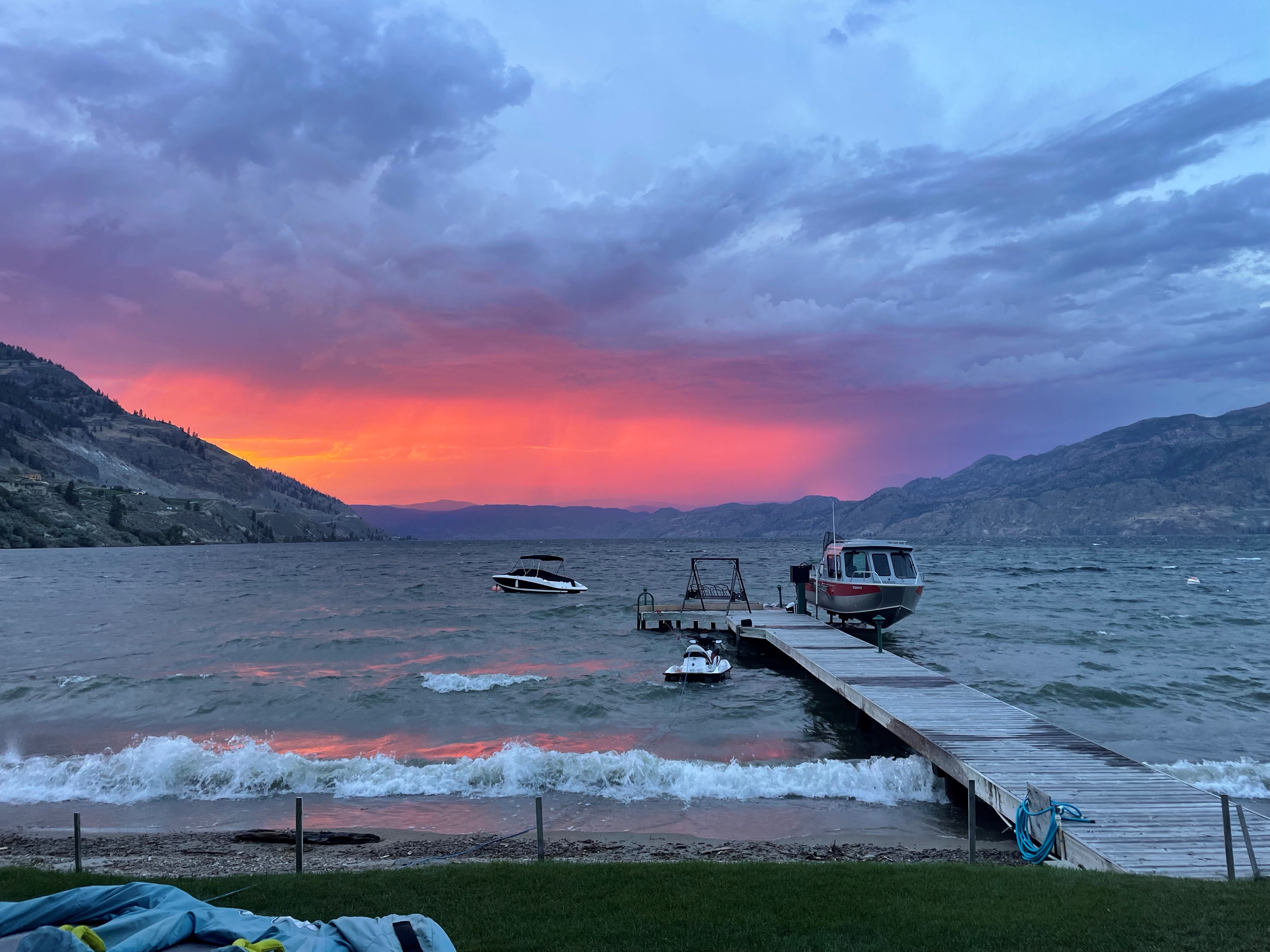 The Okanagan skies were ablaze with colour on Thursday at sunset when a thunderstorm rolled into the region.