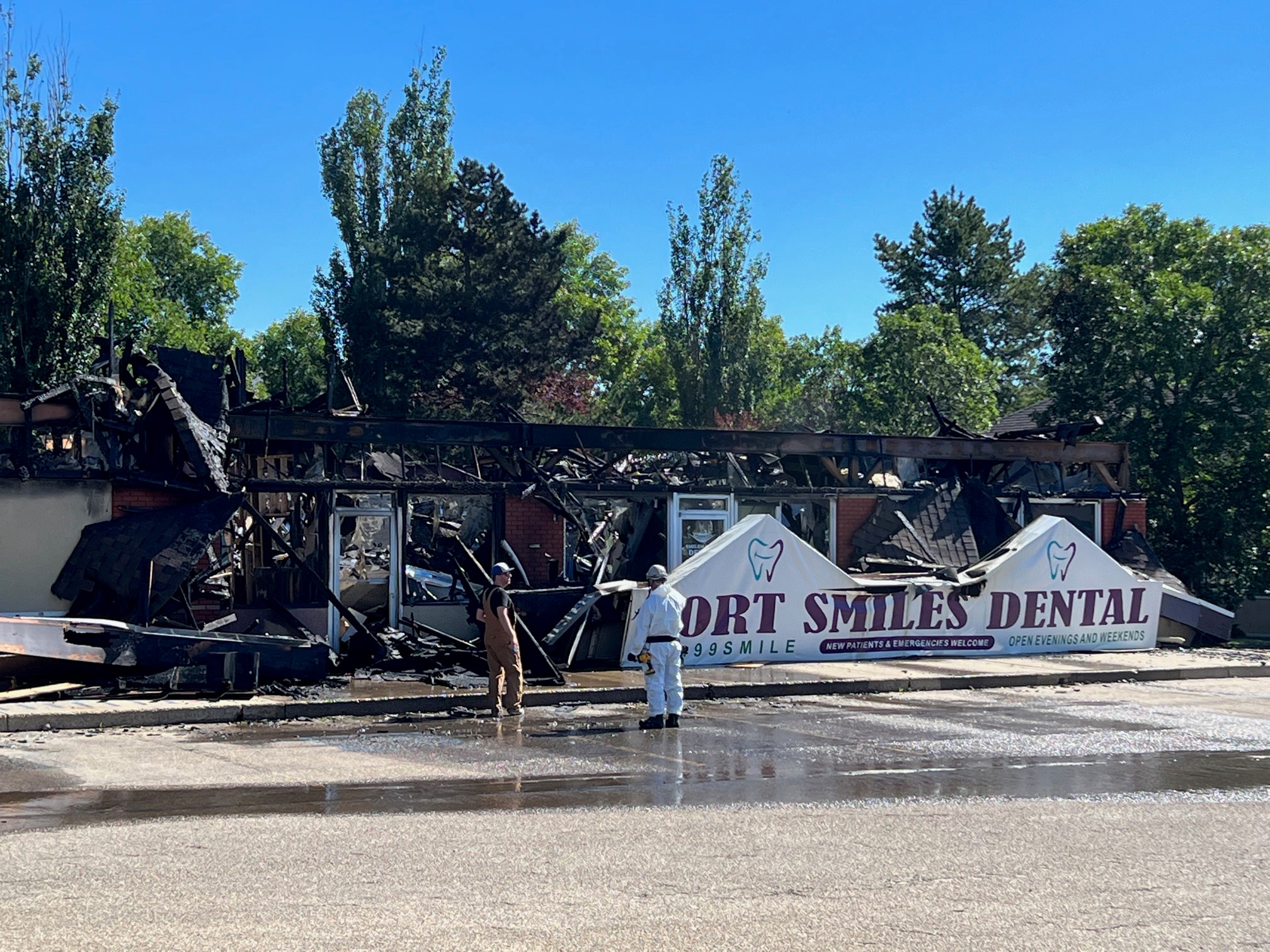 A daycare and a dental office near 99 Ave. and 104 St. were engulfed in flames when RCMP and Fire and Emergency Services arrived around 2:45 a.m., according to a news release Sunday morning.