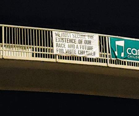 “Everyday (sic) you see a piece of pro-white propaganda in your daily commute is a win,” they wrote days after posting pictures of the banner.