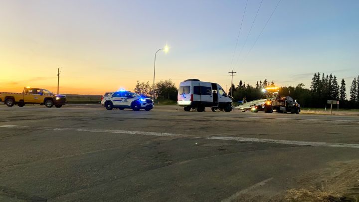 Police said officers were called to a collision involving a motorcycle and a camper van at Highway 16 and Range Road 213. They did not say when the crash happened or what they believe led up to it.