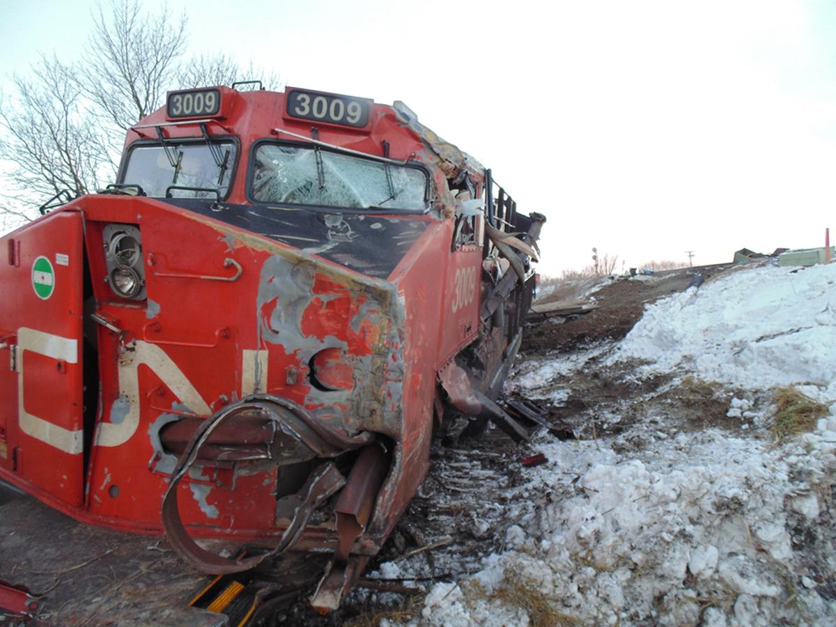 Two locomotives and eight freight cars went off the tracks in January 2019, east of Portage la Prairie, Man.