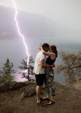 A massive lightning bolt appears to Duncan’s left, turning what photographer Danika Camba described as a “chill” engagement shoot into something electrifying.