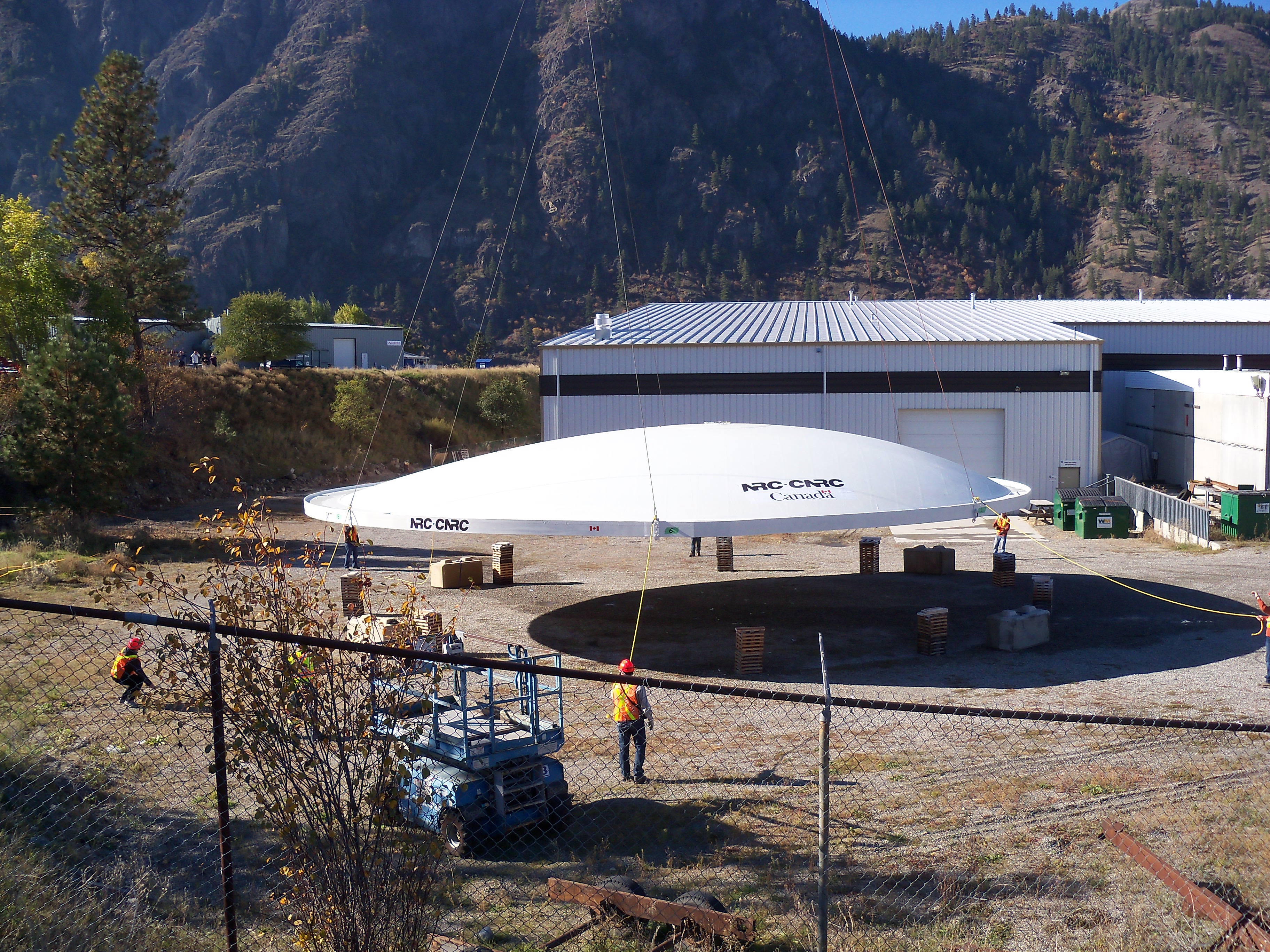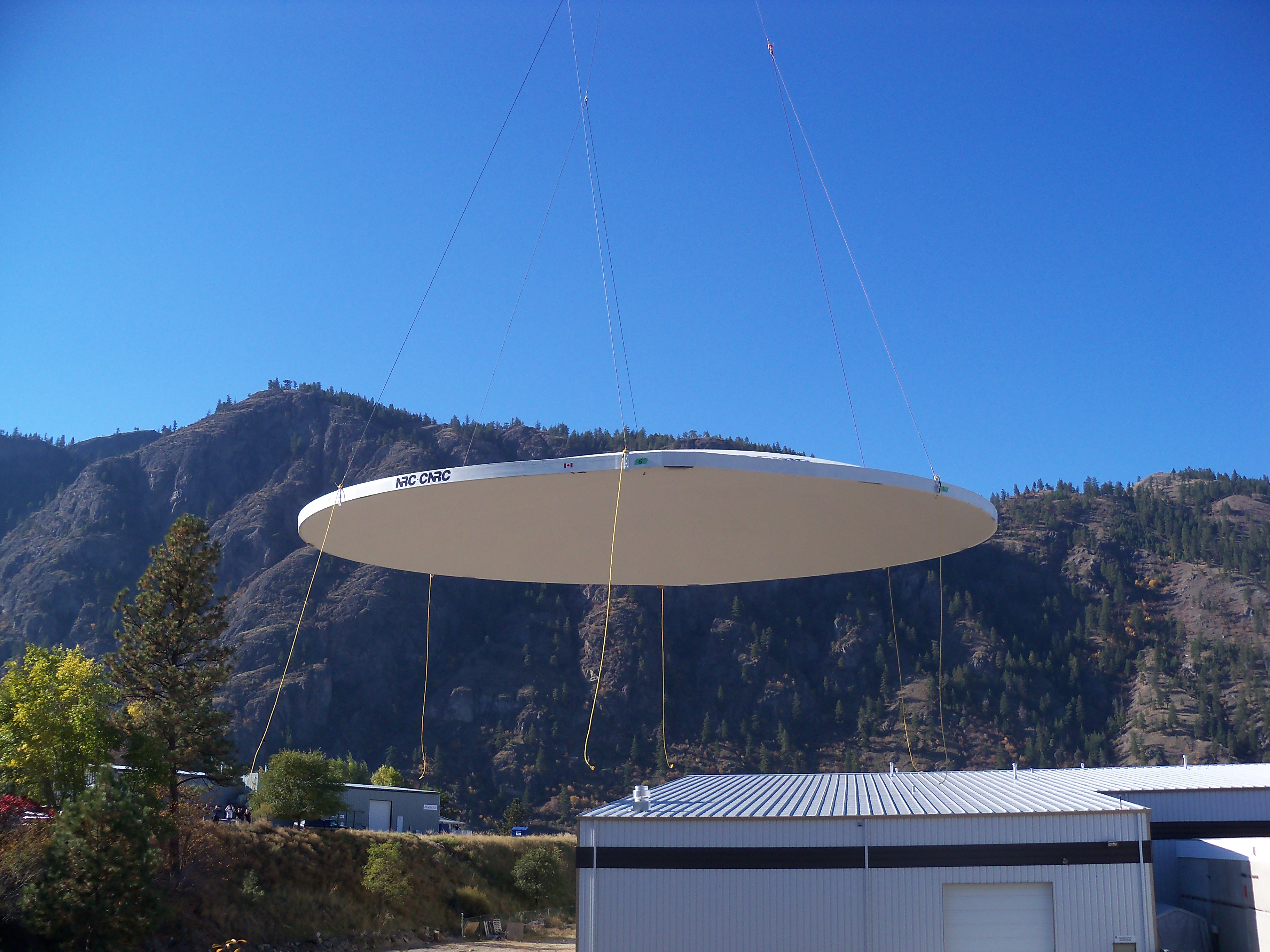 A 195 square metre telescope reflector, which looks like a massive satellite dish, traveled from Okanagan Falls to the White Lake Observatory via helicopter.