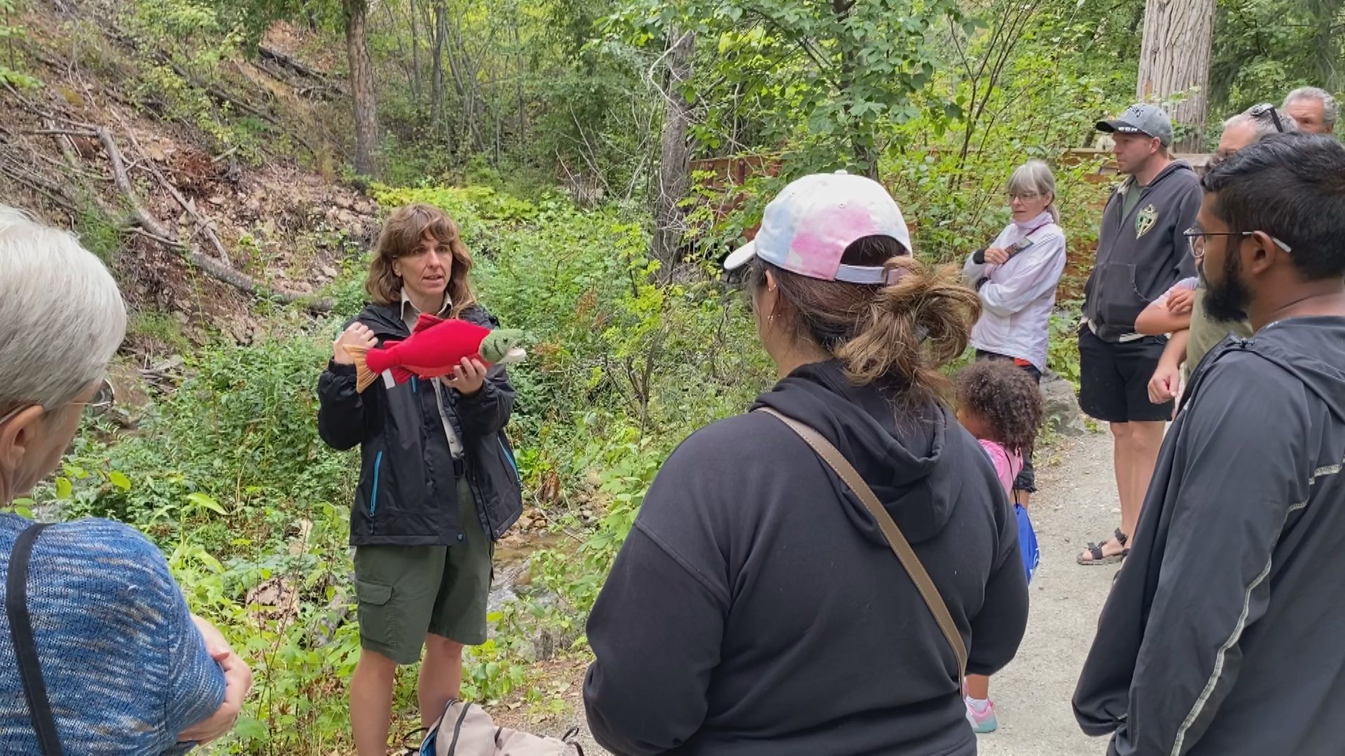 “They’re swimming around the lake, they’re tasting the waters of other creeks, and they’re going to keep moving along until they taste the water that they recognize,” described RDCO park interpreter, Risti Lesperance.