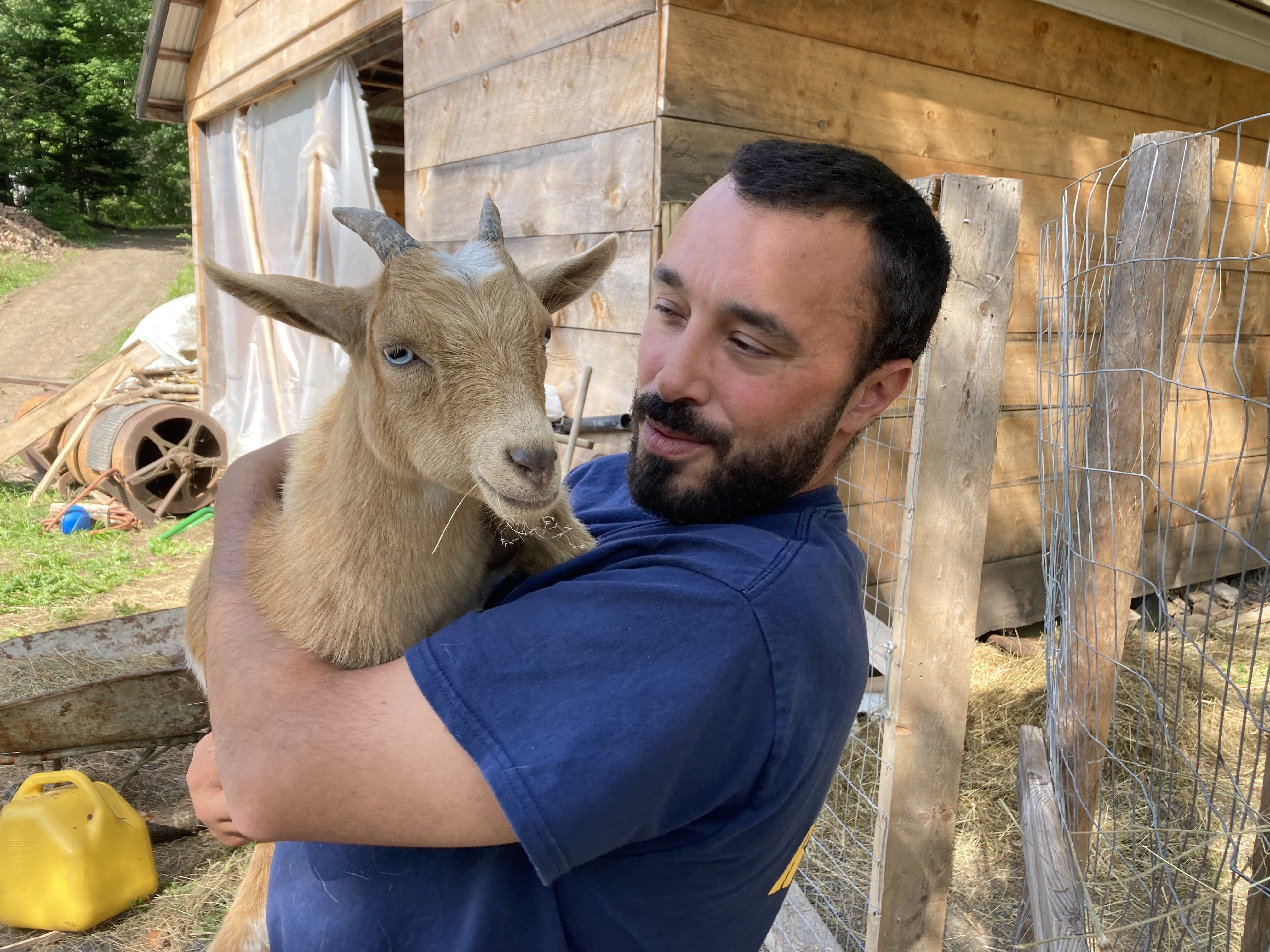 Oliver, a volunteer firefighter with the Summerville Fire Department, spends much of his time outside with his seven goats and two cows, Archie and Edith, on his little farm on his home property in Summerville, N.S.