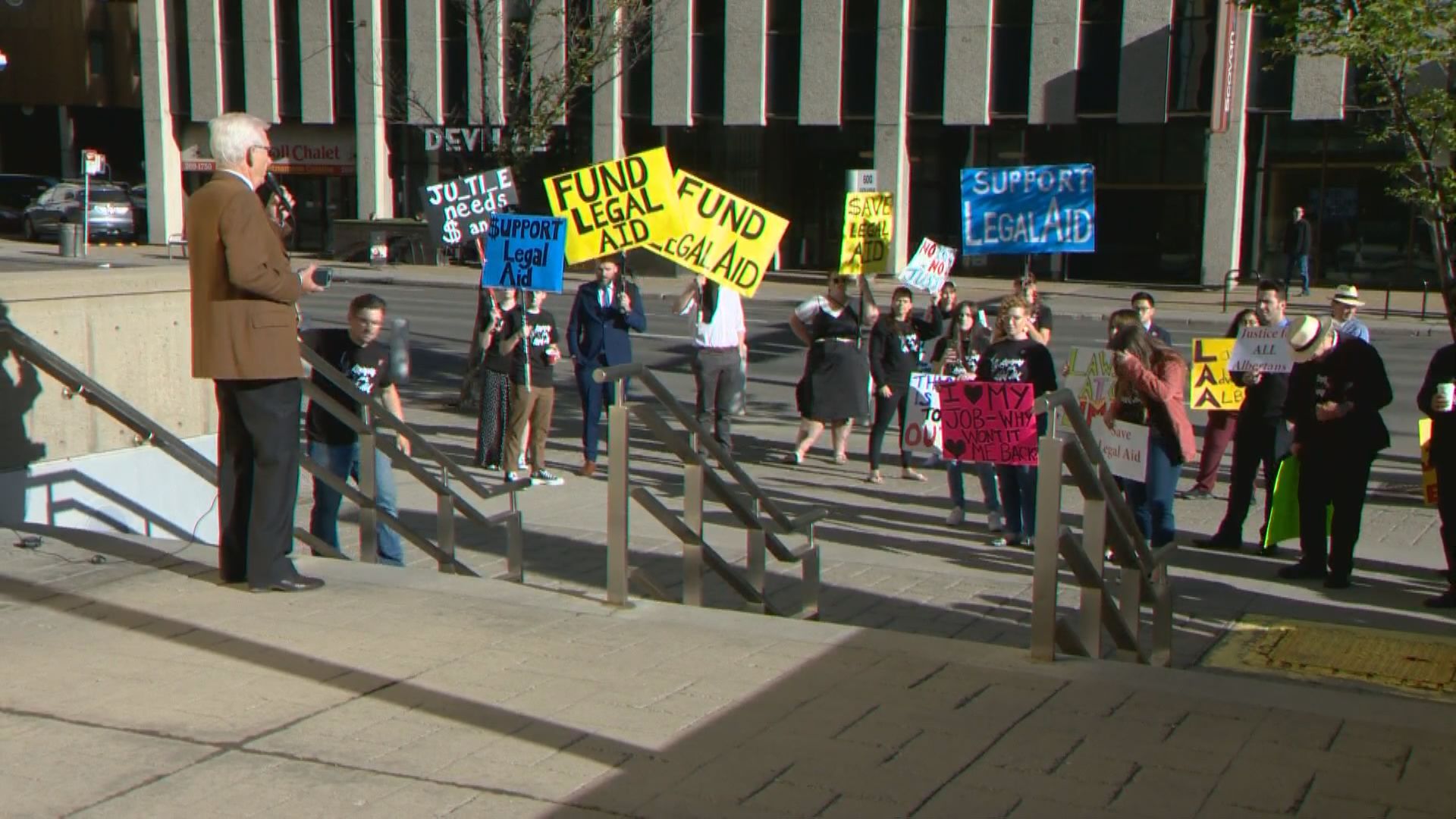 Defence lawyers who represent Albertans that wouldn’t normally be able to pay for their services staged a walkout in front of courthouses in Calgary and Edmonton on Friday morning.