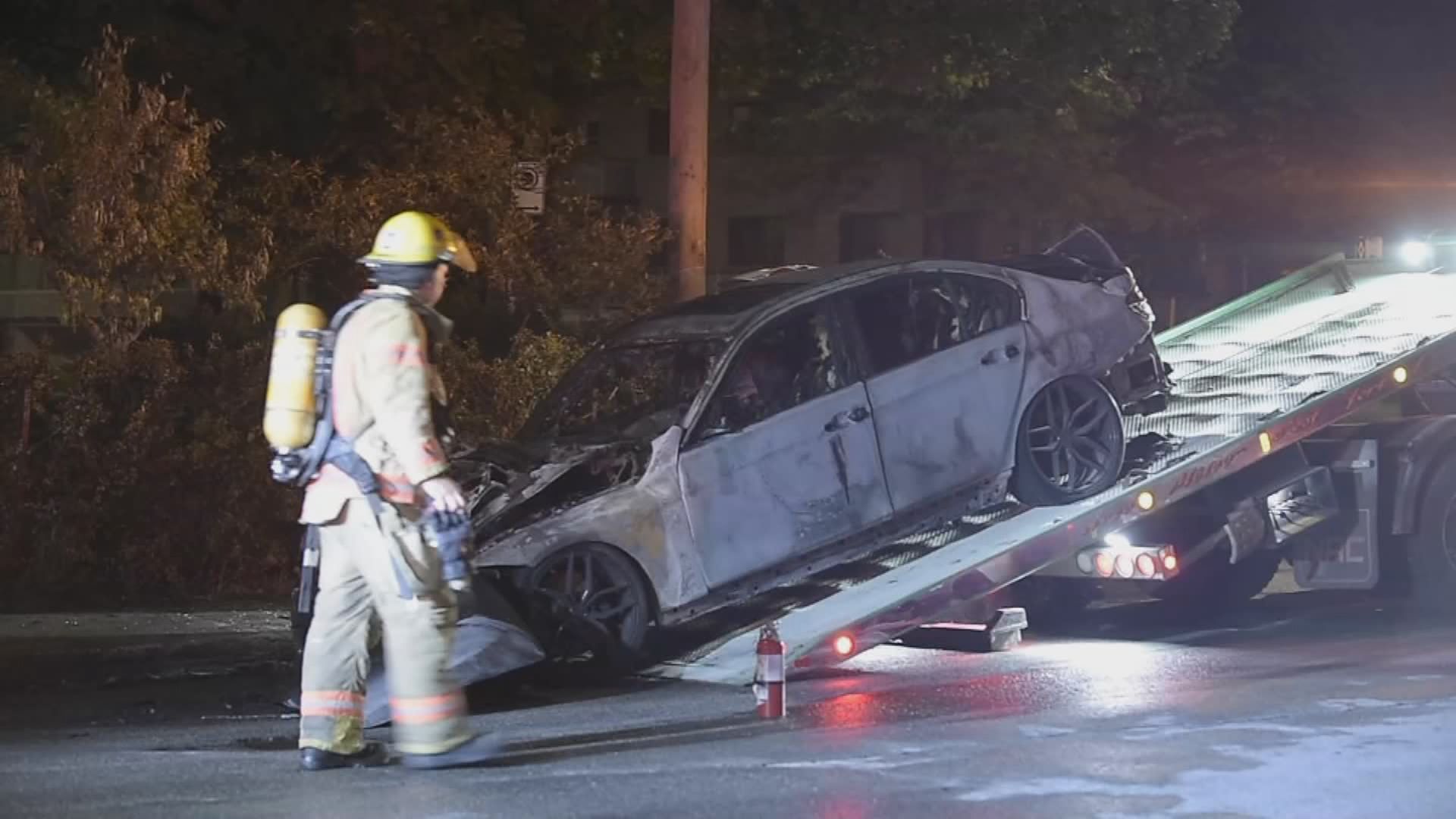Less than 30 minutes later, a second 911 call was made reporting a car on fire on Cabrini Street in Mercier-Hochelaga-Maisonneuve. The fire spread to a second vehicle before being brought under control. There were no reported injuries. Witnesses saw one suspect fleeing the scene, according to police.