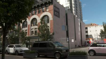 The stabbing took place outside the Murray Hotel in Vancouver around 8 a.m. on Monday.