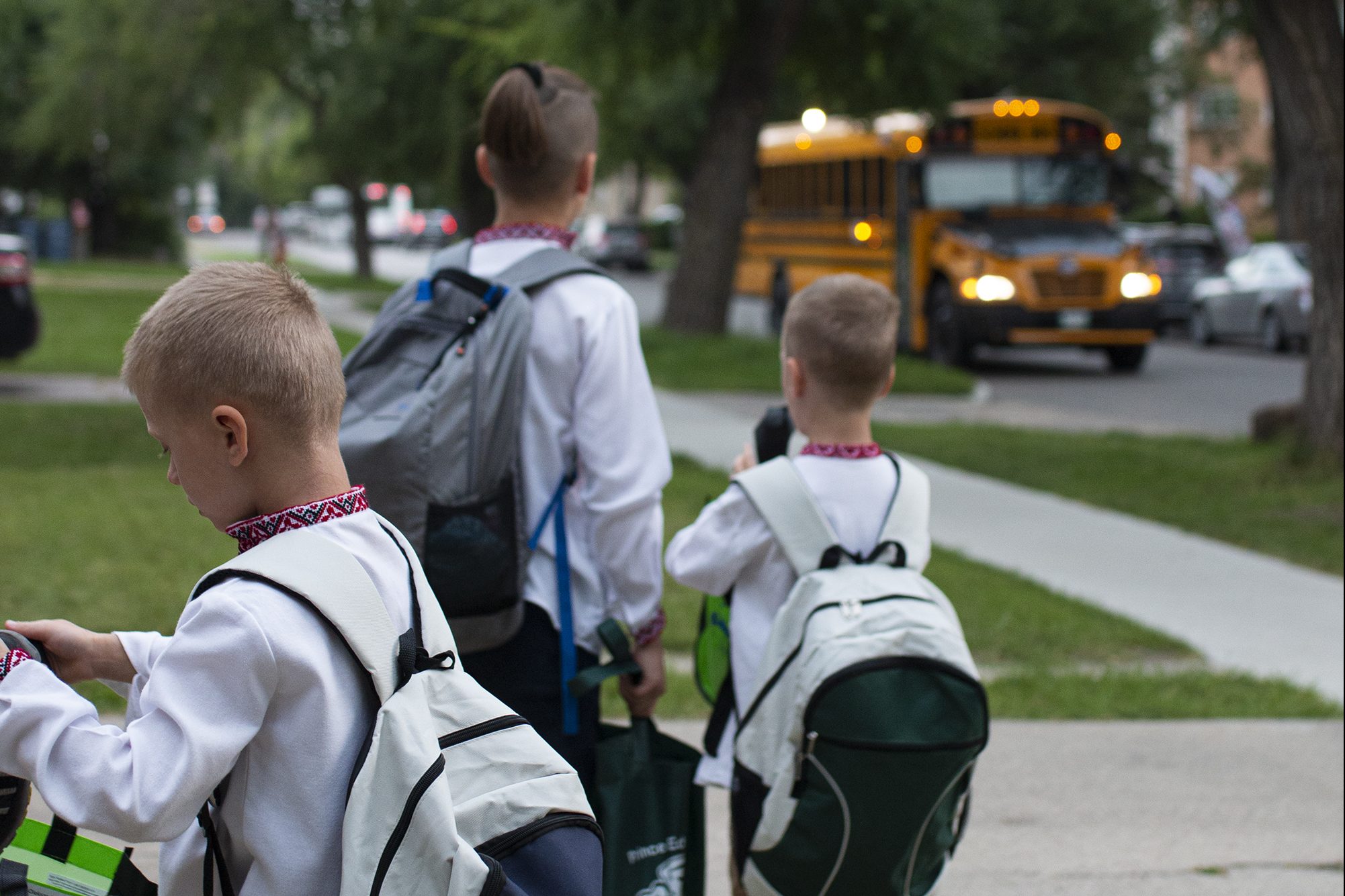 The twins climbed up the steps wearing matching backpacks and traditional Ukrainian shirts, to the driver’s friendly greeting.