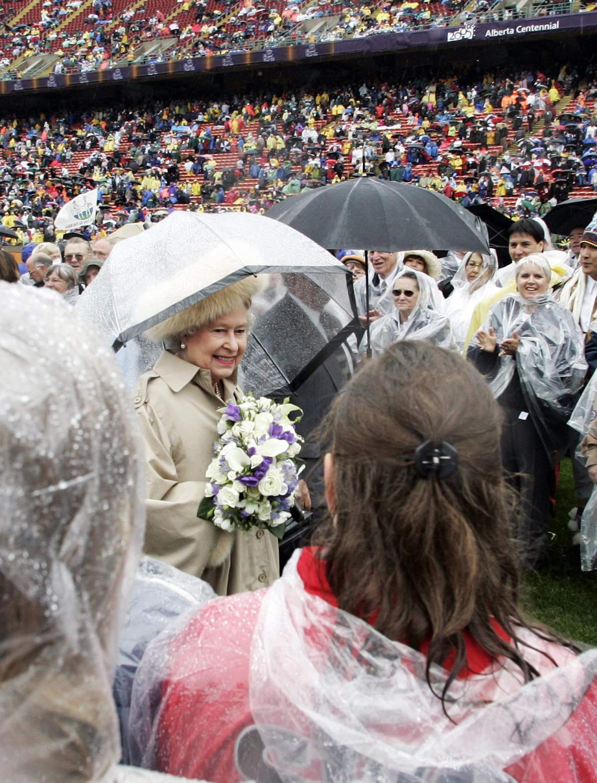 The Queen and Prince Philip embarked upon a nine-day tour of Saskatchewan and Alberta to celebrate both provinces’ centennials. The trip was characterized by torrents of rain at nearly every stop.