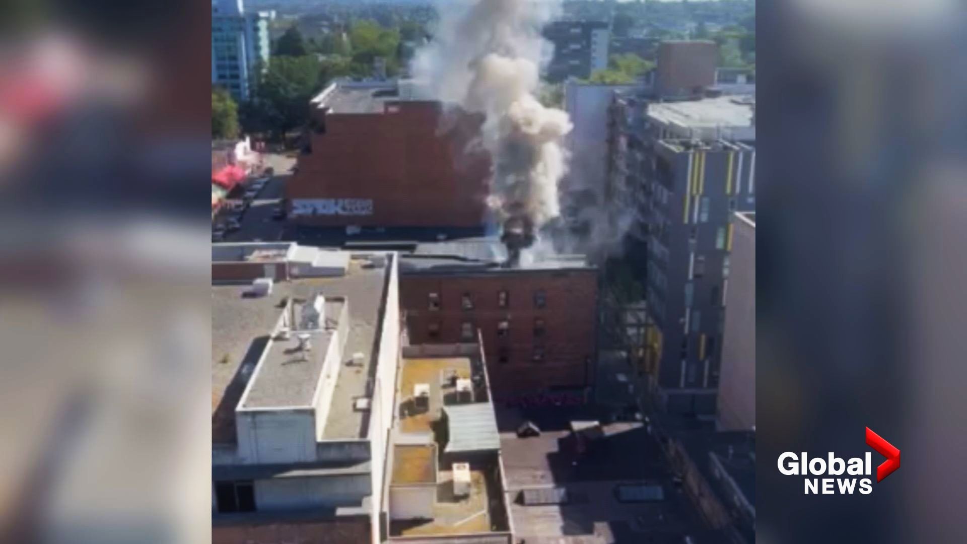 Click to play video: 'Video captures structure fire following reports of explosions in Vancouver’s Chinatown'