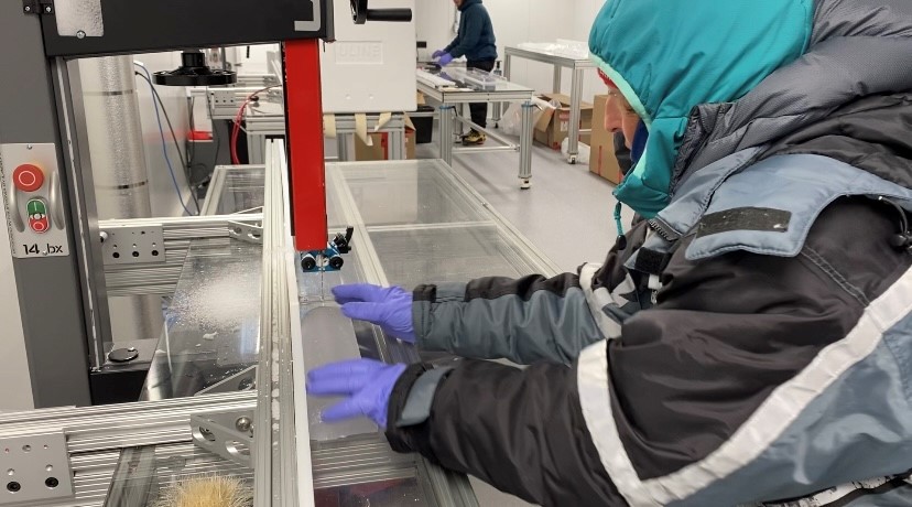 The ice was long-lined out in a sling by a very skilled chopper pilot and eventually brought to the CICL at the U of A campus in Edmonton. It’s the only lab of its kind — and perhaps the coldest. One room is -40 C.