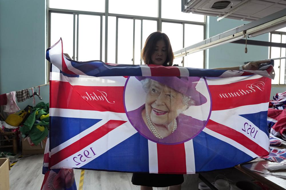 Some are British flags to be carried by mourners or hung outside homes. Others show Elizabeth’s portrait and the years of her birth and death. They range in size from 21 to 150 centimeters (8 to 59 inches) wide and sell for 7 yuan ($1).