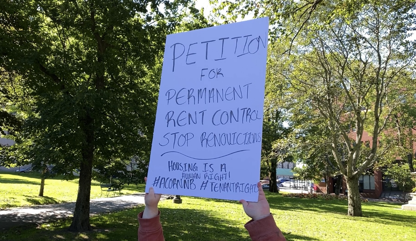 Members of ACORN NB gathered at King’s Square in Saint John on Saturday morning, petitioning for the province to implement a permanent rent cap,ban renovictions, and overhaul the Residential Tenancies Act.