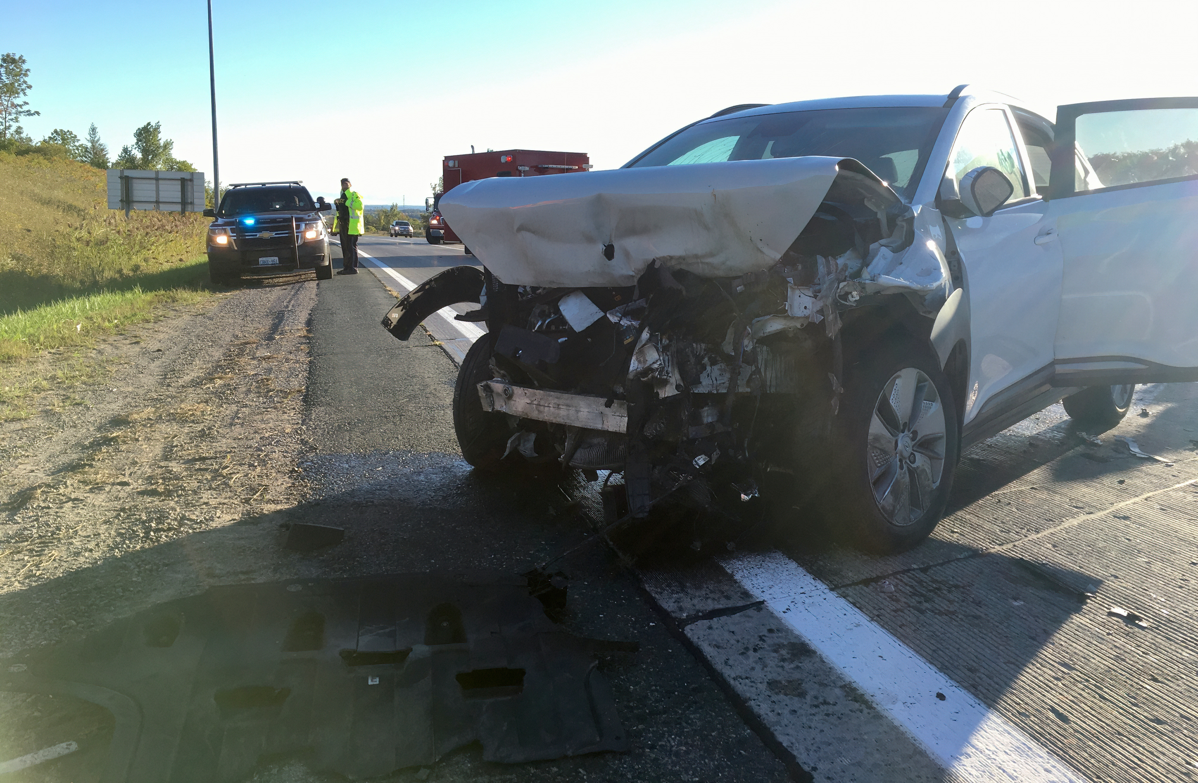 Emergency crews were called to the southbound lanes of the off-ramp at Tapley 1/4 Line around 7:30 a.m. following reports of a rear-end collision involving an SUV and a large commercial truck.