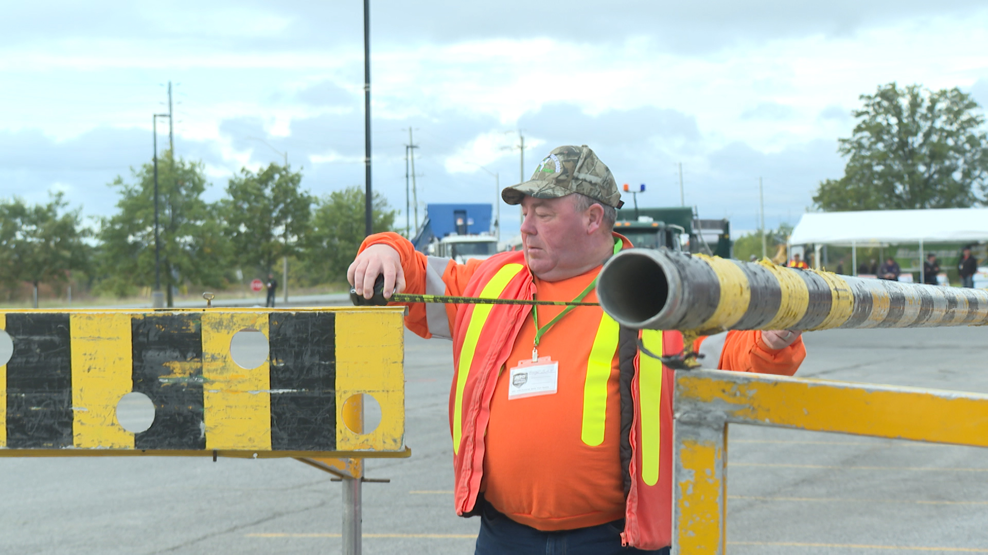 “The roadeo itself is laid out in a way that the obstacles replicate a lot of the obstacles that they would see on a day-to-day basis when they’re doing their snow plowing routes, in a controlled environment. So this is dried pavement, where they’re normally dealing with this in a big storm event,” said Karla Musso-Garcia of Oro-Medonte Township.