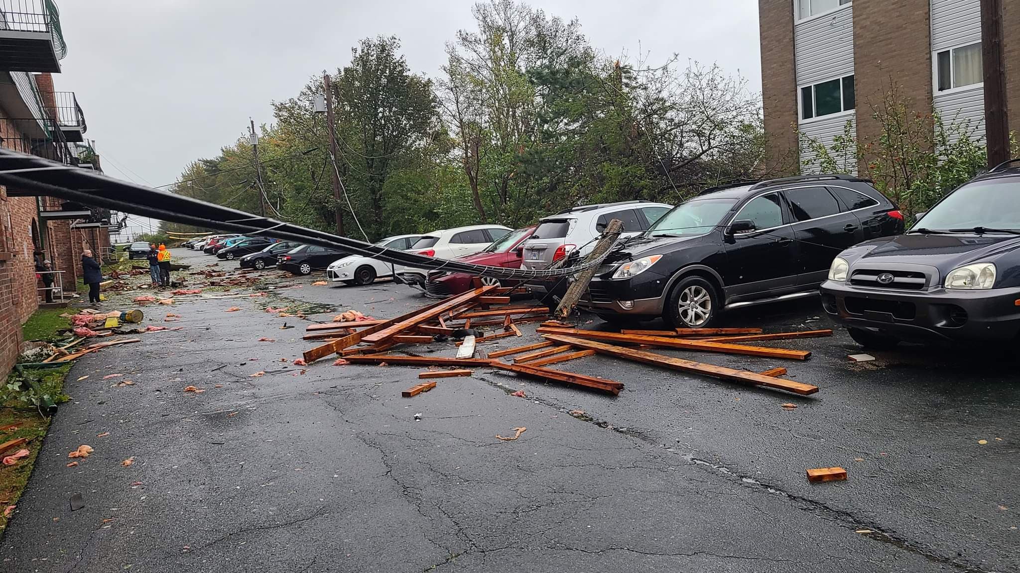“I could see a bunch of wood and debris outside, broken power pole down over the vehicles, but I couldn’t quite make out what was what. It was pitch black,” he said.