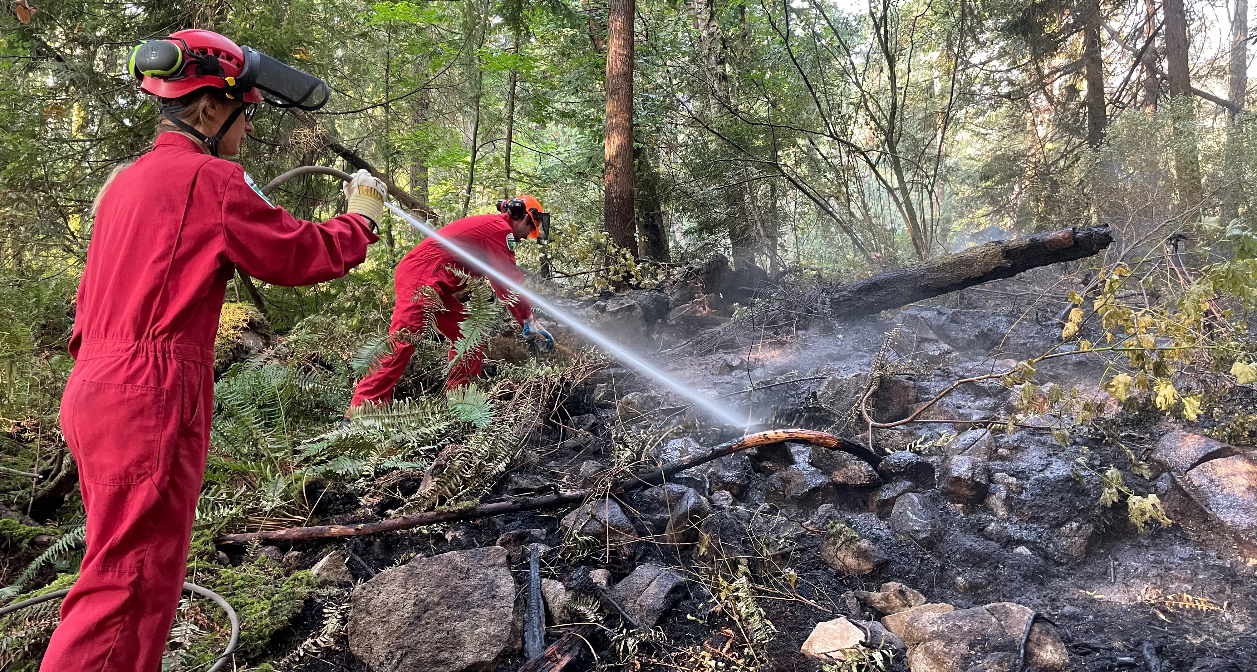 Fifty personnel, including BC Wildfire Service crews and Metro Vancouver staff, remained on scene Tuesday, with helicopter support.