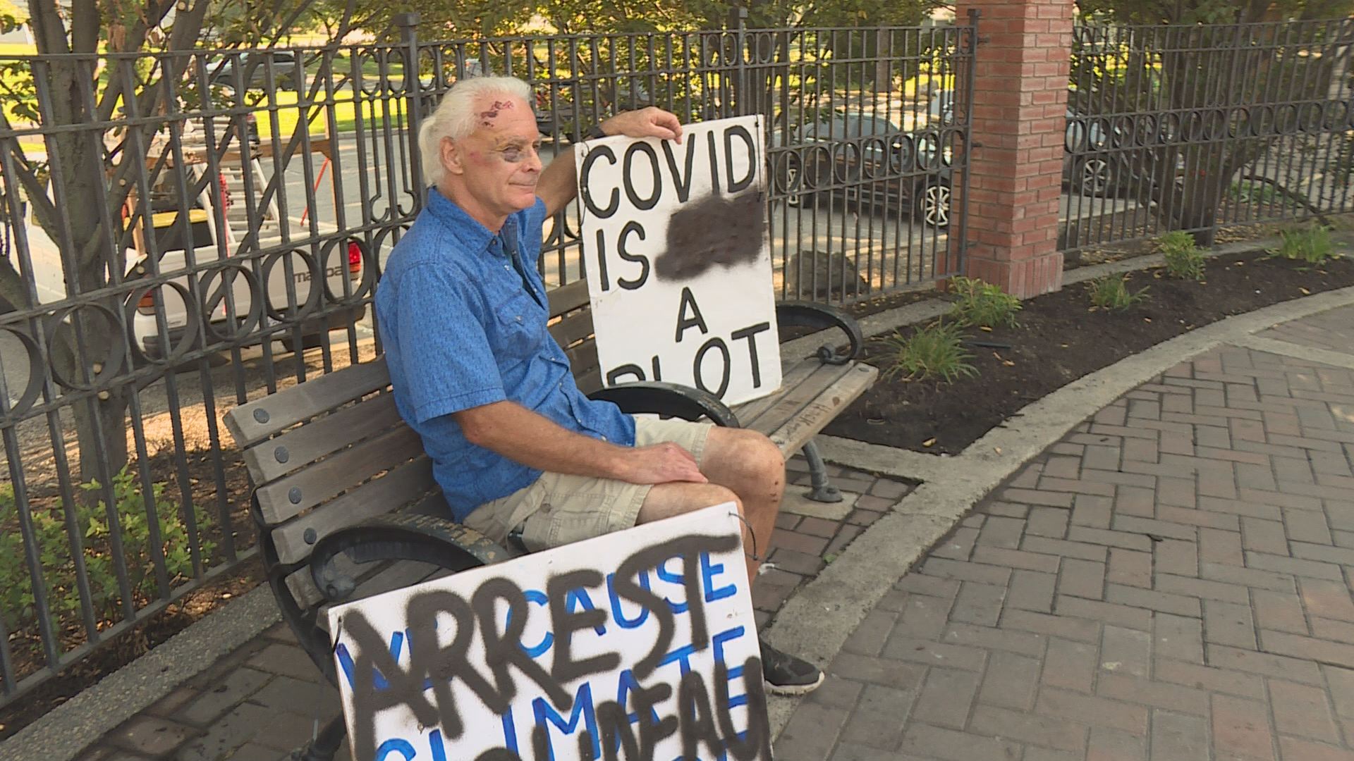 Carrying signs with messages like “COVID is not a plot,” Korry Zepik has been regularly counter-protesting at demonstrations against COVID restrictions.