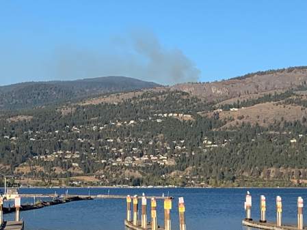 Smoke rises from a wildfire that’s located outside of West Kelowna city limits. Global News