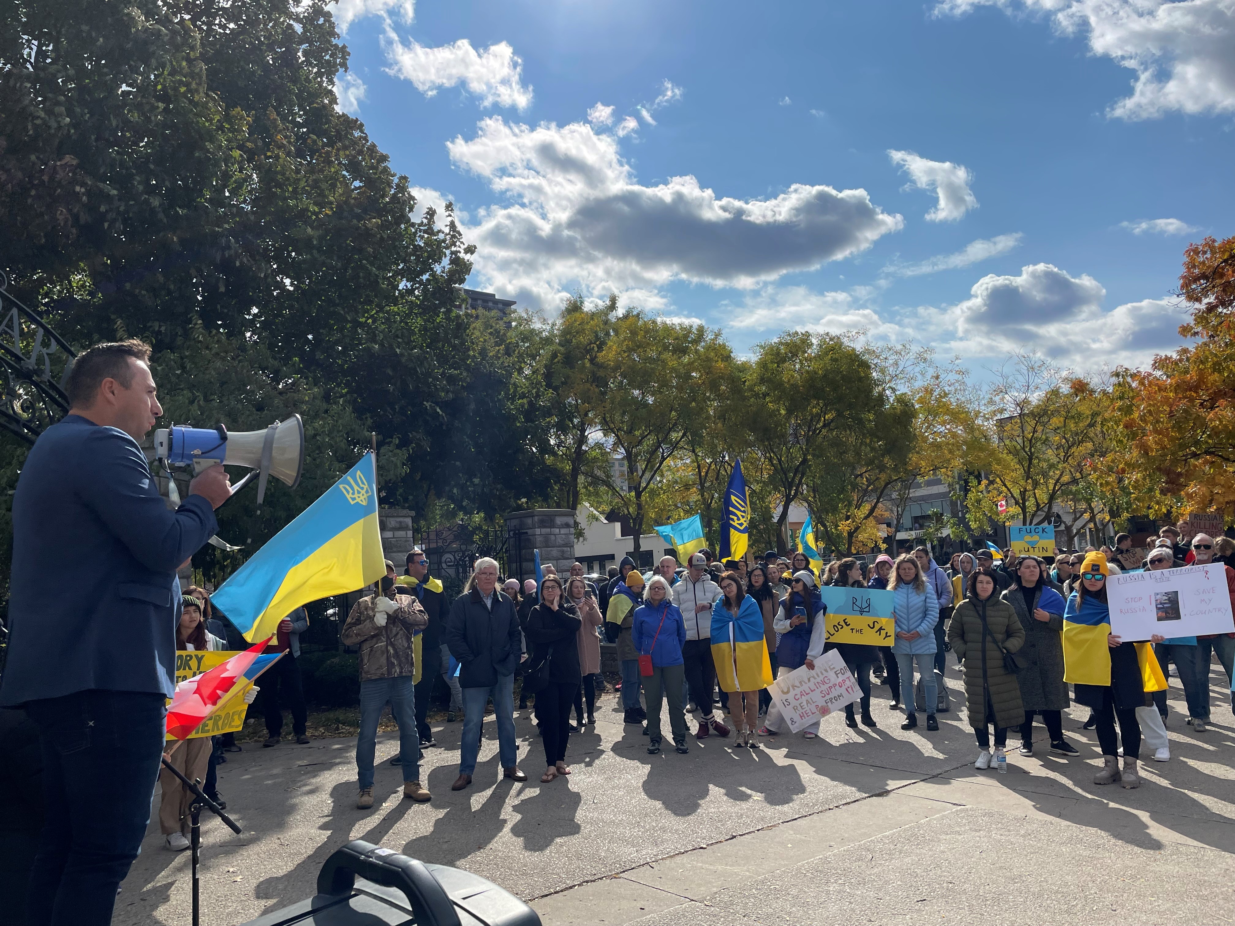 Among the many speakers at the rally was Pavlo Byk, a Ukrainian student studying at Fanshawe College. He shared a powerful story, outlining the reality his family faces in his country.