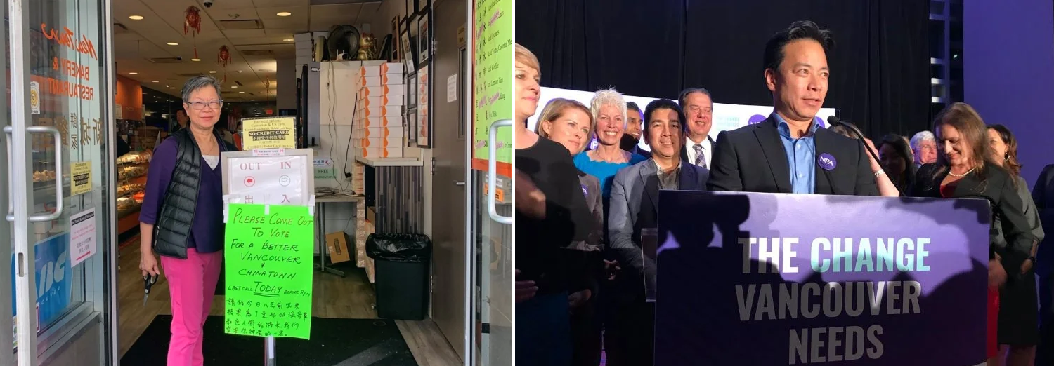 On Saturday, owner Susanna Ng put a sign up encouraging the community to vote for “a better Vancouver and Chinatown”.