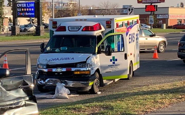 The EPS said investigators were told the ambulance was headed north in the southbound lanes of 127 Street with its lights and sirens on when an SUV that was headed north, “and wanting to turn west into a shopping complex,” collided with the oncoming ambulance.