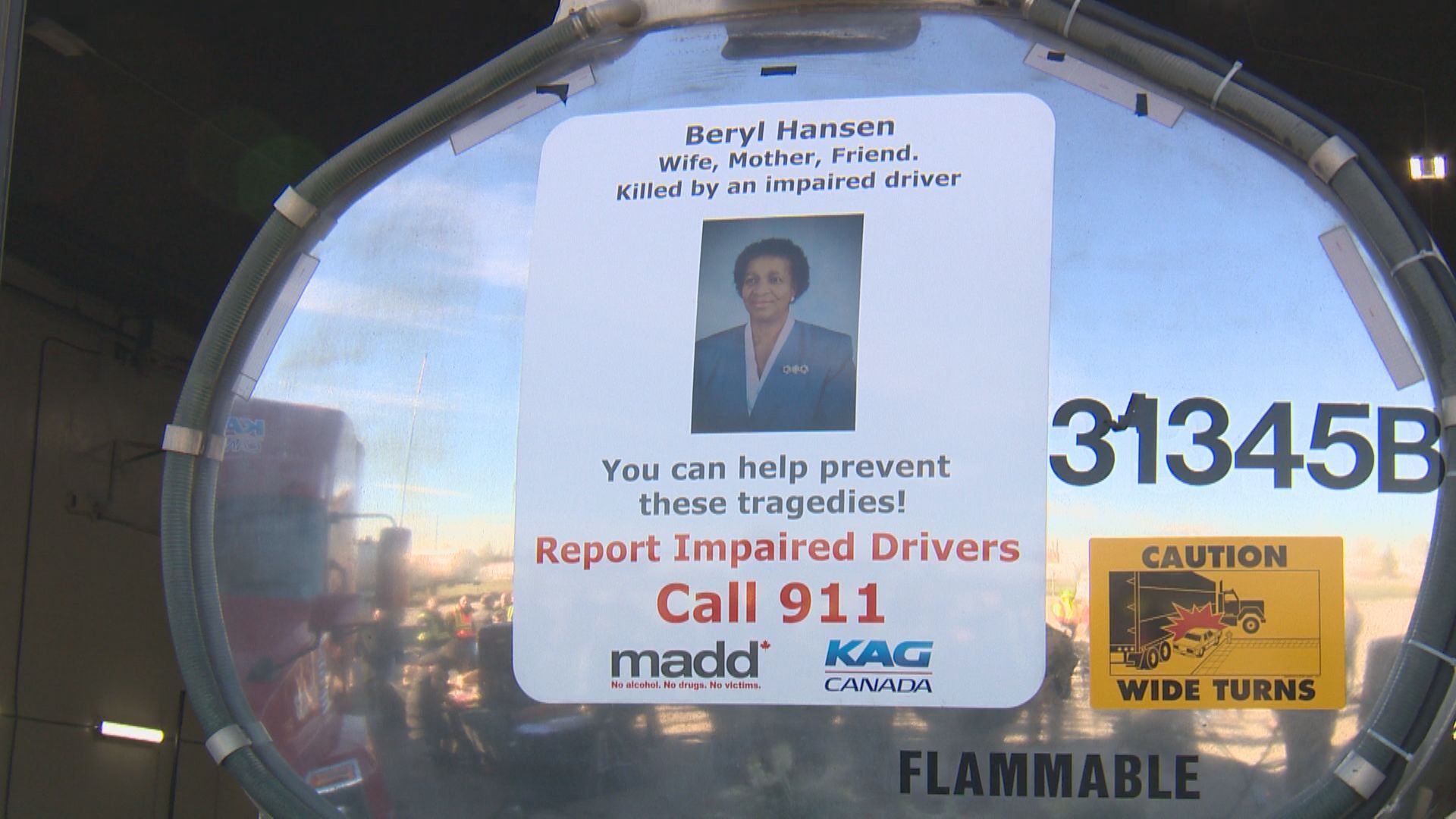MADD Canada and KAG Canada, a North American trucking company, celebrated the 10th year of their road safety partnership today by placing Beryl’s image on 20 of KAG Canada’s trucks. It’s part of an ongoing campaign that encourages motorists to report suspected impaired drivers by calling 9-1-1.