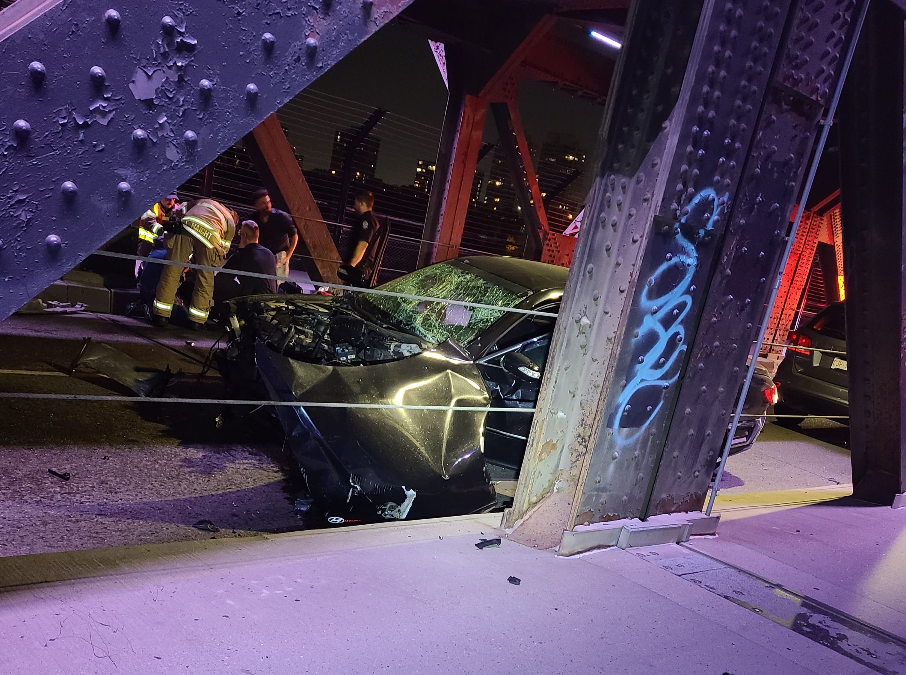 Officers were dispatched to the bridge at about 10:45 p.m. after someone called 911 and reported a crash involving speeding vehicles.
