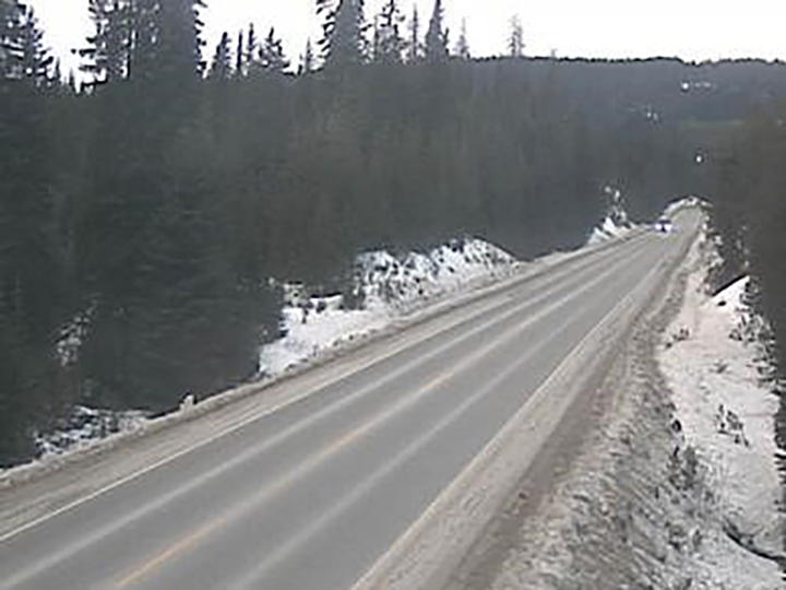 Around 10 to 15 centimetres of snow is forecast for the highway between Tuesday evening through Wednesday morning and snow levels will hover near 1,200 to 1,500 metres Tuesday evening then fall to 800 to 1,000 m overnight.