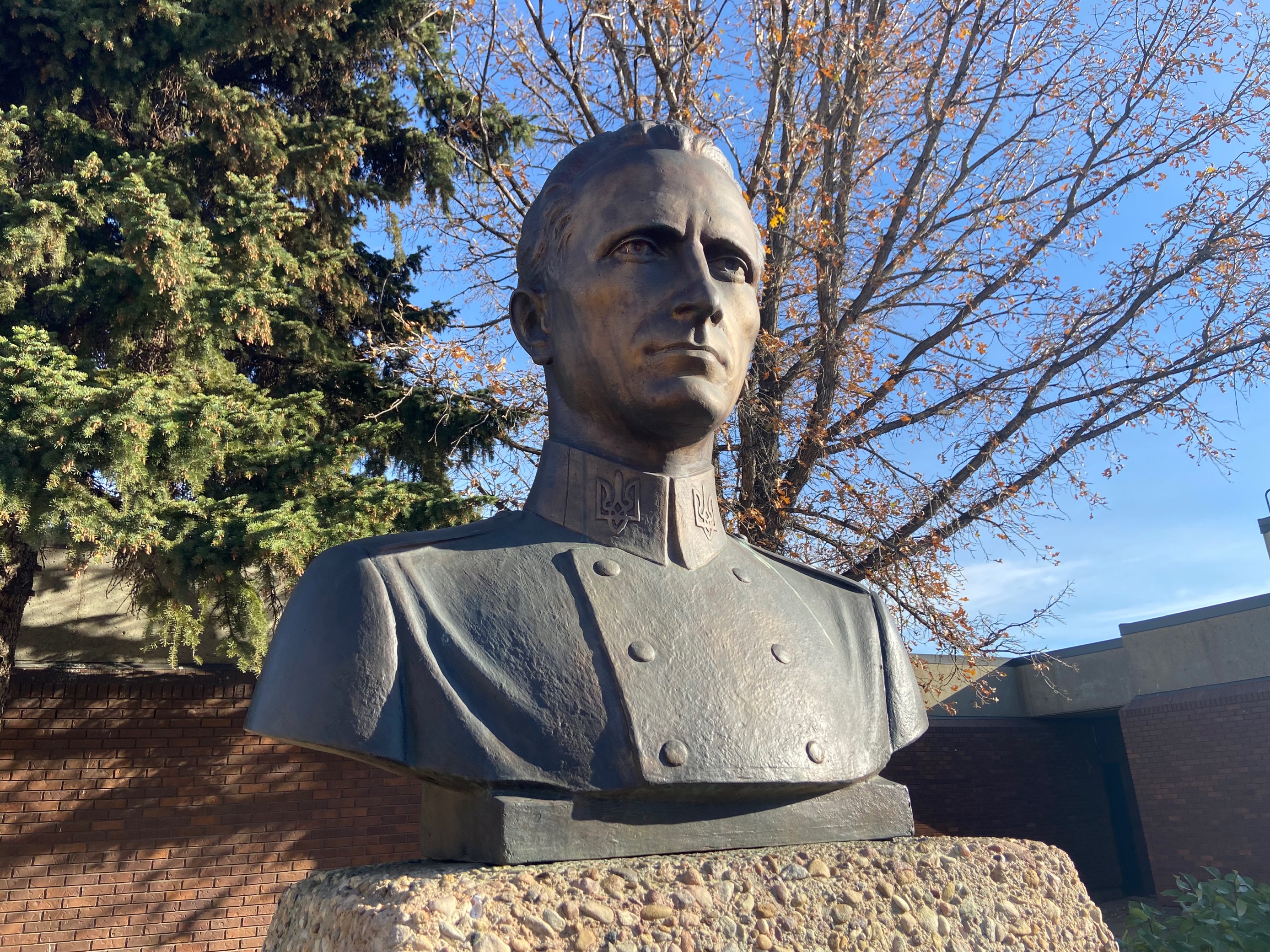 Kinney wrote about the vandalism the same day it occurred, saying the bust of Roman Shukhevych had the words “actual Nazi” spray-painted on it in red.