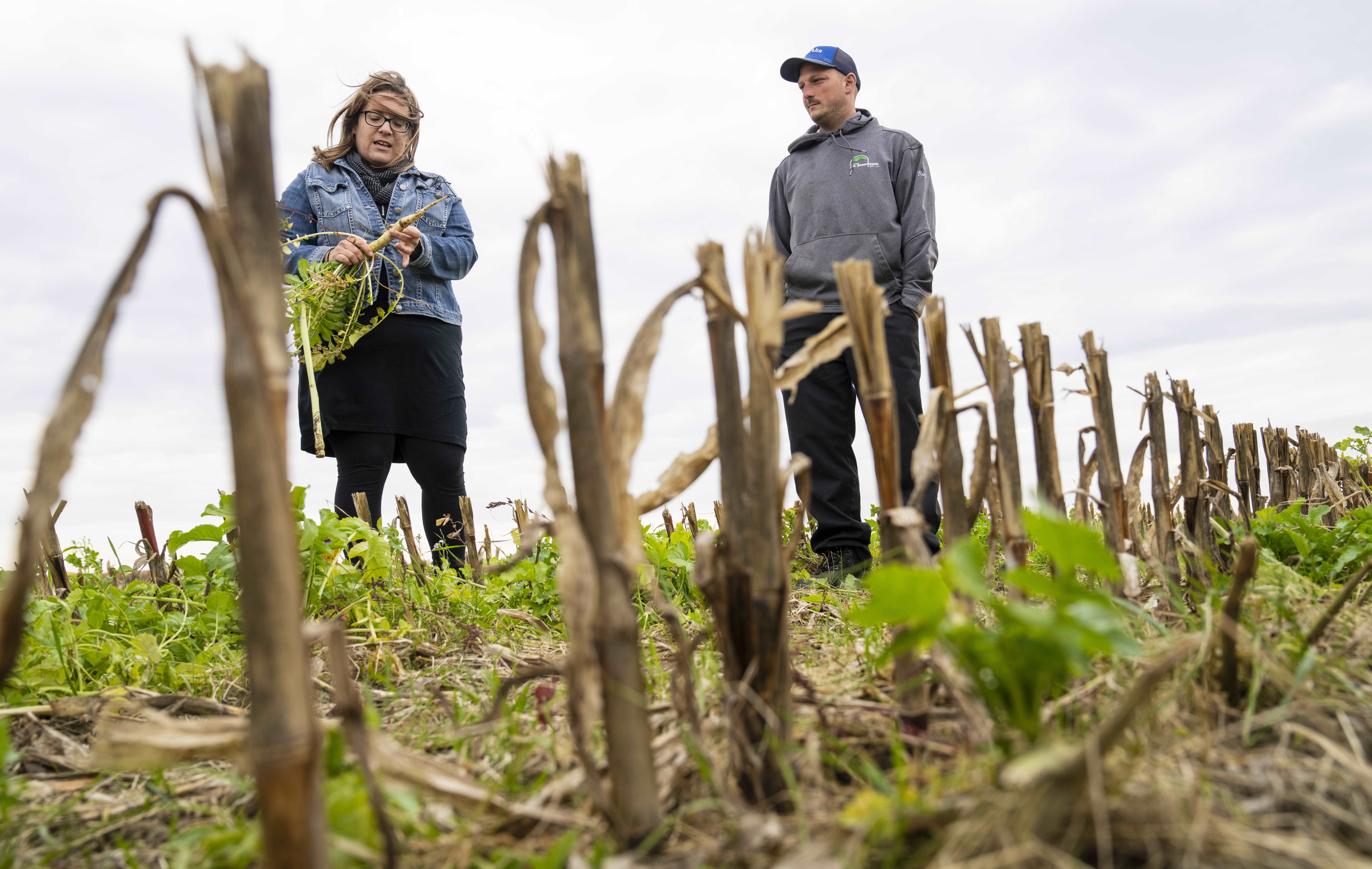 Adding organic matter to the soil can also capture carbon and could reduce the amount of chemical fertilizer he uses in the future, reducing his farm’s greenhouse gas emissions. But it’s a long-term process and one that costs money — the fields that are being used to grow cover crops aren’t yielding products he can sell.