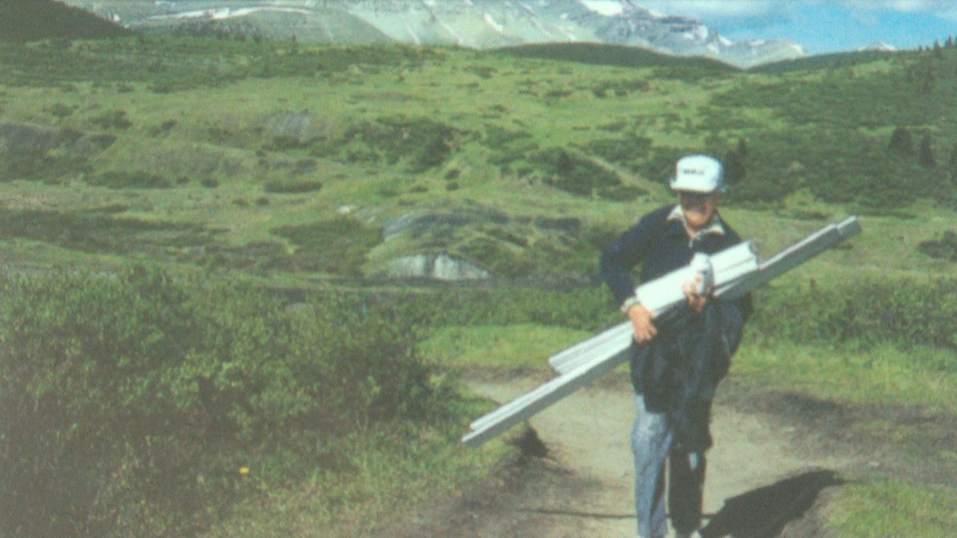 The buzz of a weedwacker fills the air with sound, as Paula (Resek) McKay chops down some overgrown grass. The Resek family had a home in Mountain Park pre-1950.