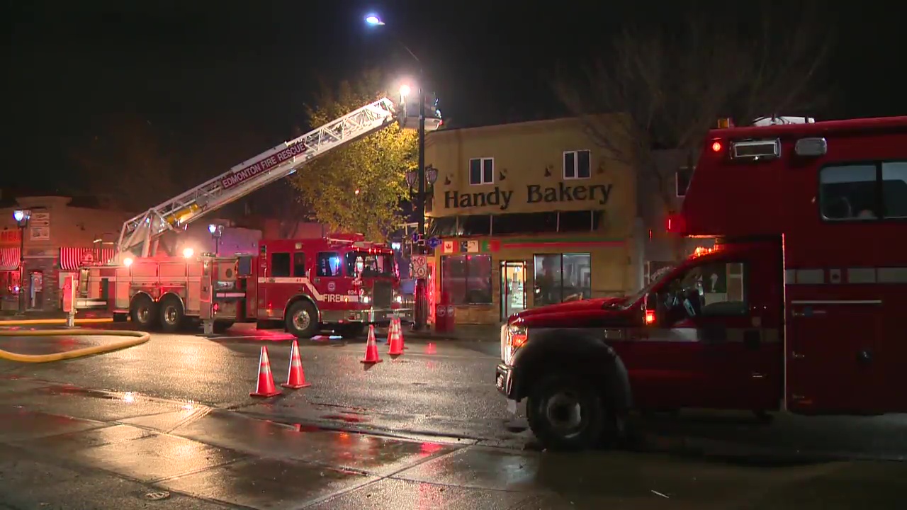 Edmonton Fire Rescue Services were called to the Handy Bakery on 118 Avenue NW and 87 Street NW around 12:30 a.m. for reports of a fire.