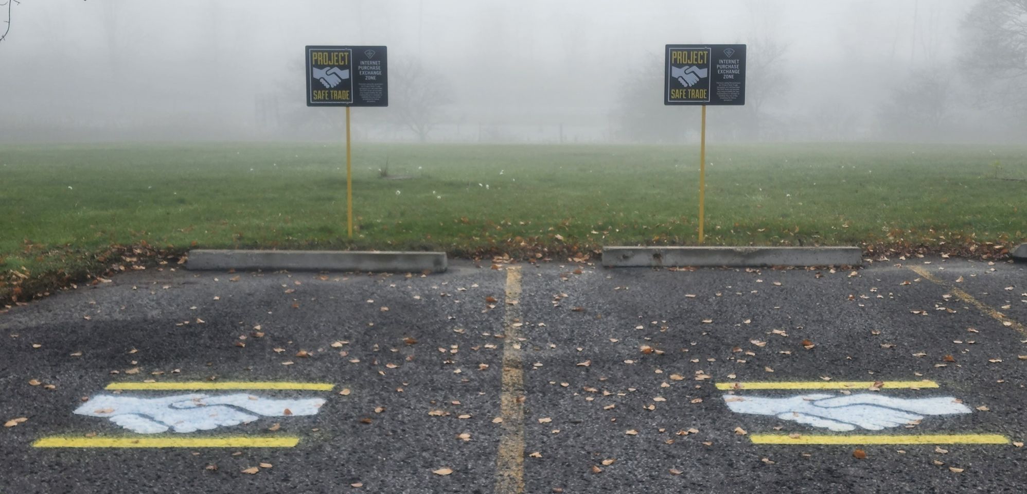 The designated spots are identified by signs and provide a public space for individuals who sold or purchased items online to meet unknown buyers or sellers to complete the sales transaction.
