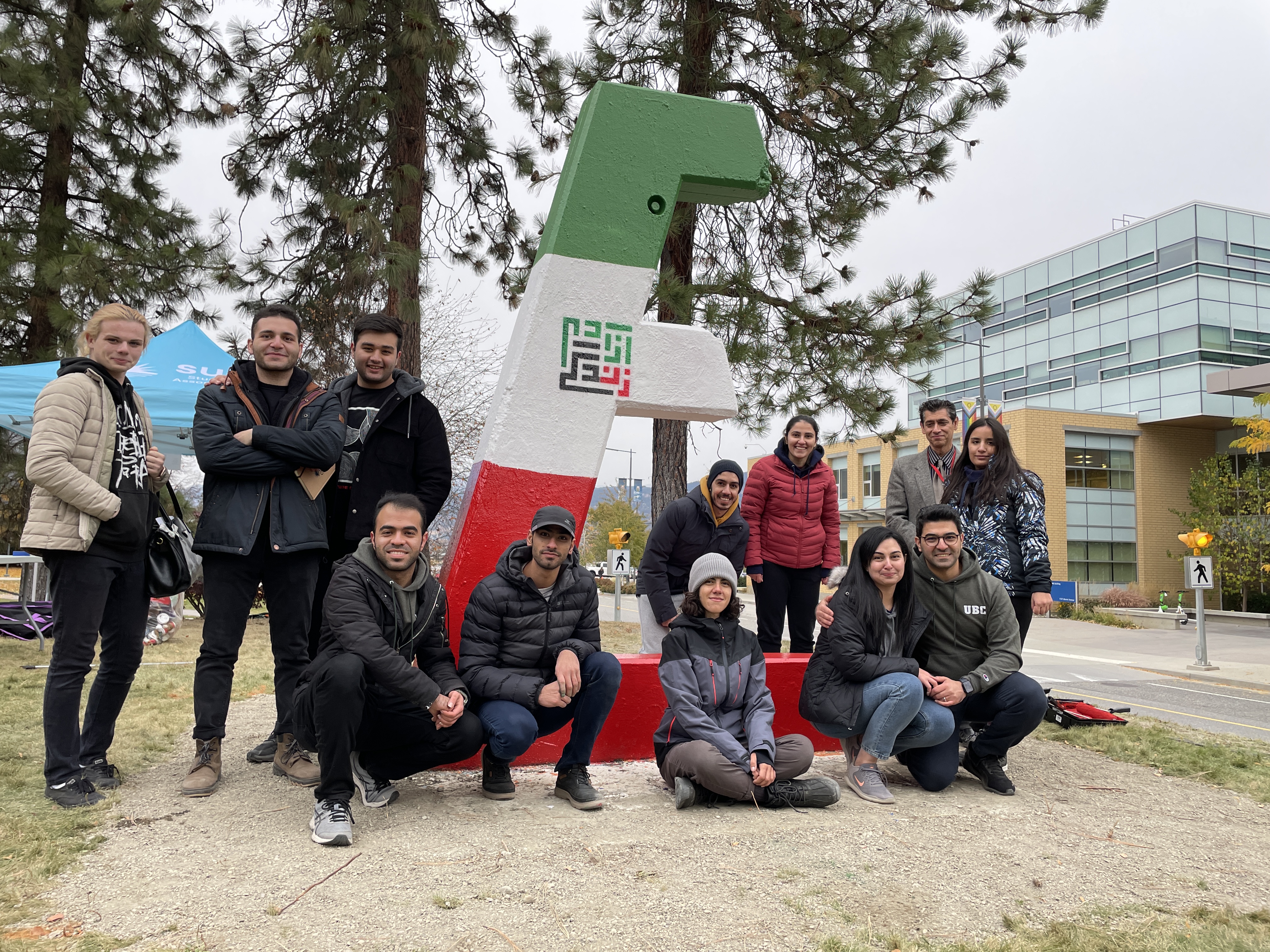 On Thursday a group of students at the Kelowna, B.C. campus painted the engineering faculty’s letter “E” sign in the colours of the Iranian flag.