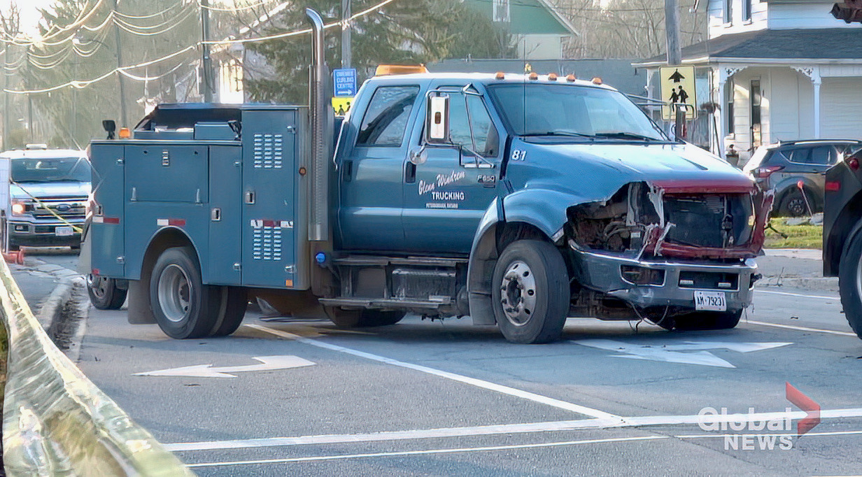 The truck then veered into a traffic-light pole, causing hydro wires to come down, police said.
