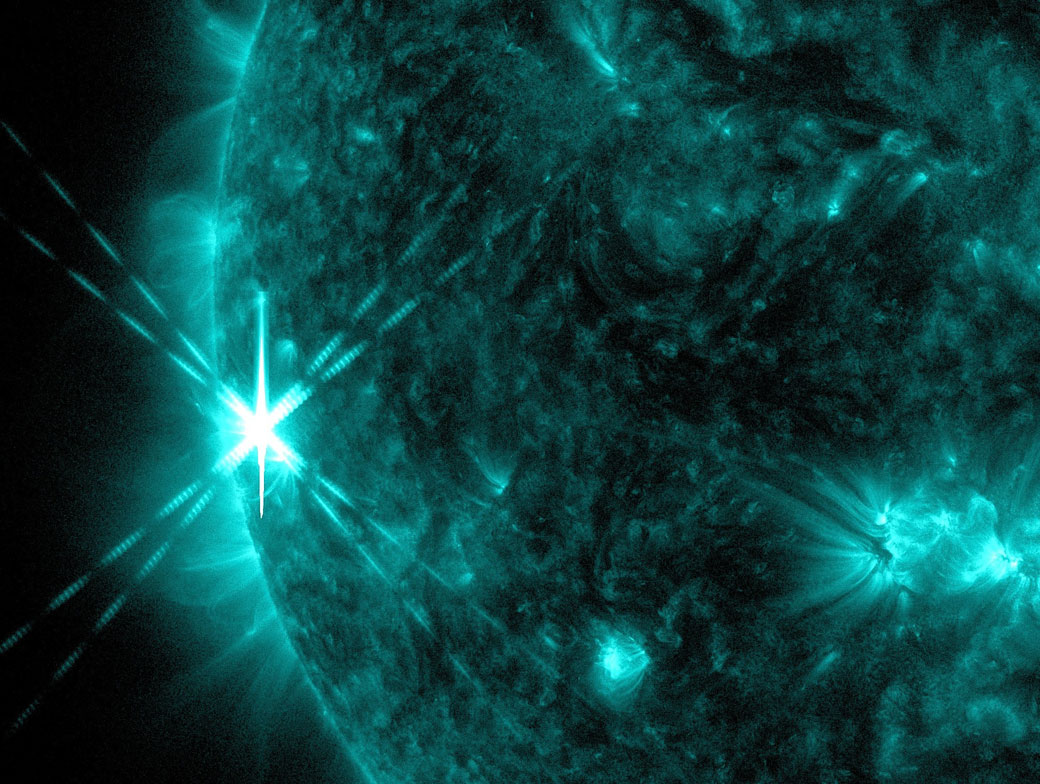 Solar flares are measured by the amount of x-rays they emit. X flares are the strongest. If directed at Earth, these flares can disrupt communications systems and cause blackouts; they can even pose a danger to astronauts aboard the International Space Station. The number refers to its strength: an X2, for example, is twice as strong as an X.