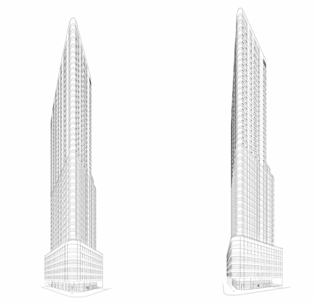 Global News reached out to the developers behind the plan for comment, but did not hear back before deadline. The renderings show the design concept of the 41-storey building, done by Scott Shields Architects.