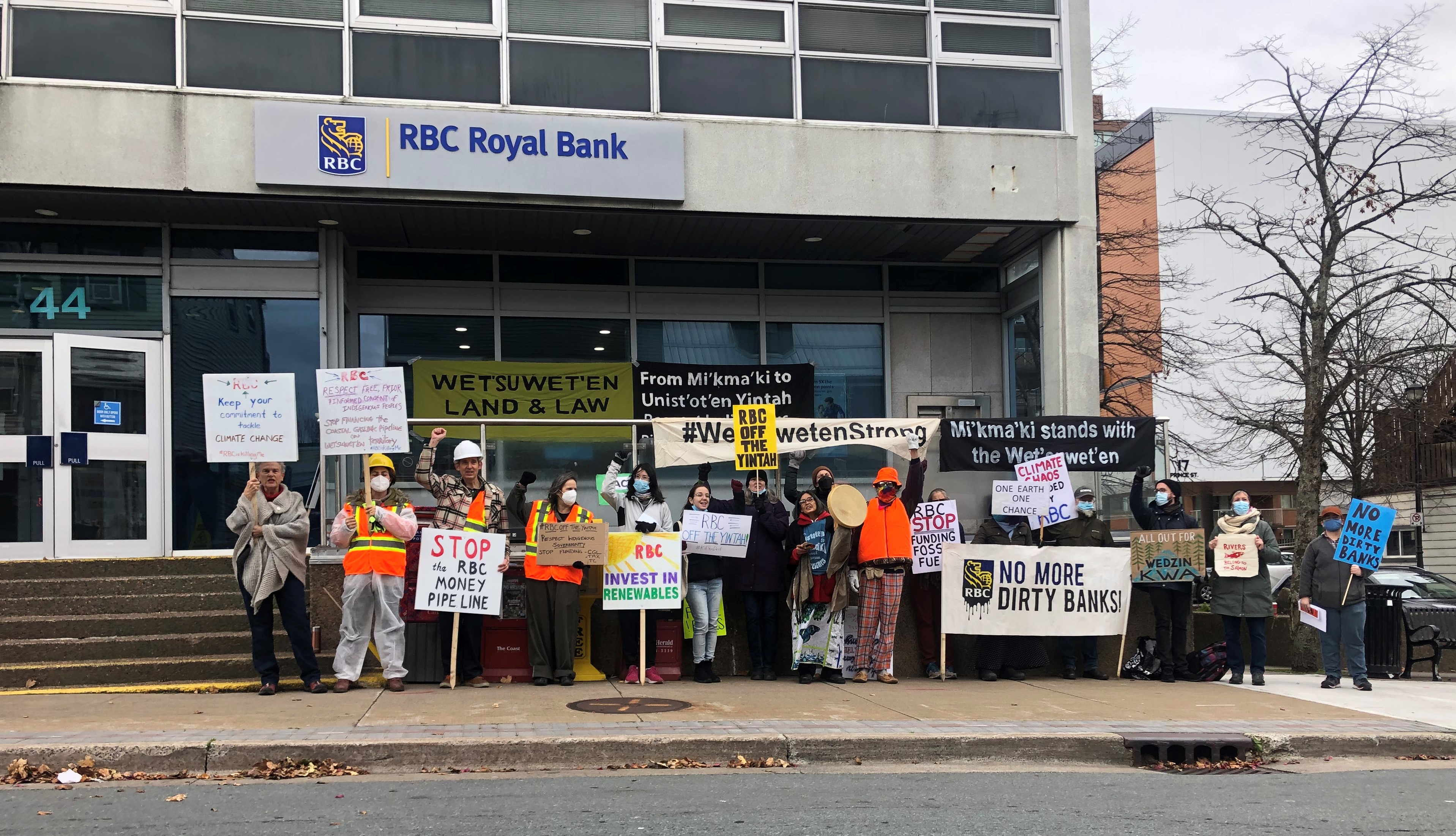 Protesters in Nova Scotia are calling on the Royal Bank of Canada to stop funding a pipeline in northern British Columbia.