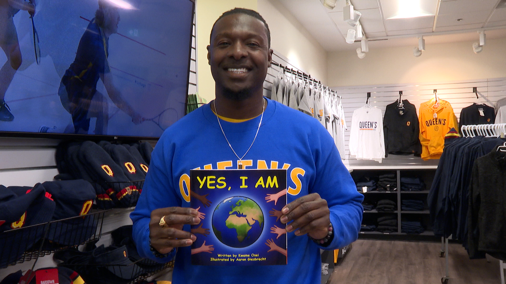 Kwame Osei poses with a copy of his book 'Yes, I am.'. Global News
