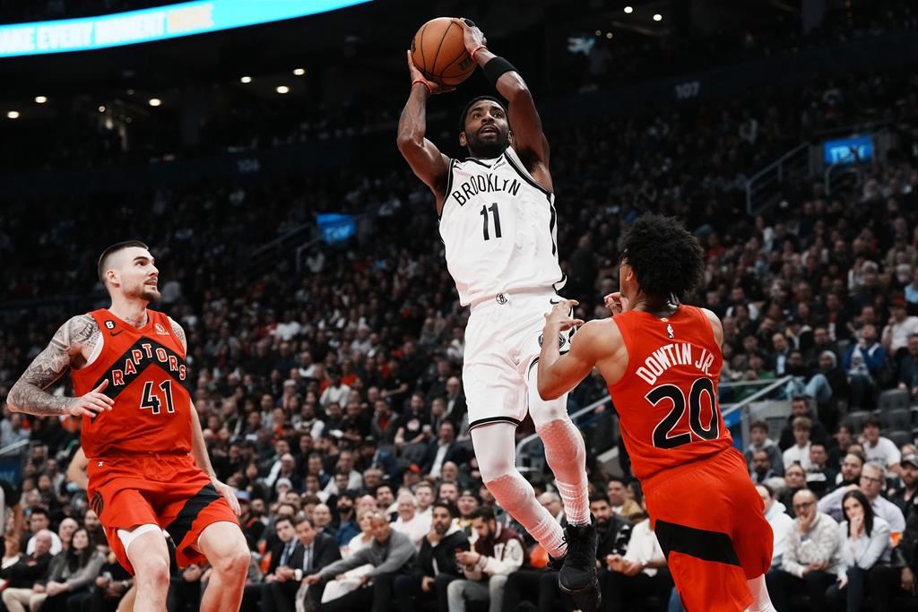 Kyrie Irving scored 29 points in his third game back from suspension, and the Brooklyn Nets cruised to a 112-98 win over the undermanned Raptors.