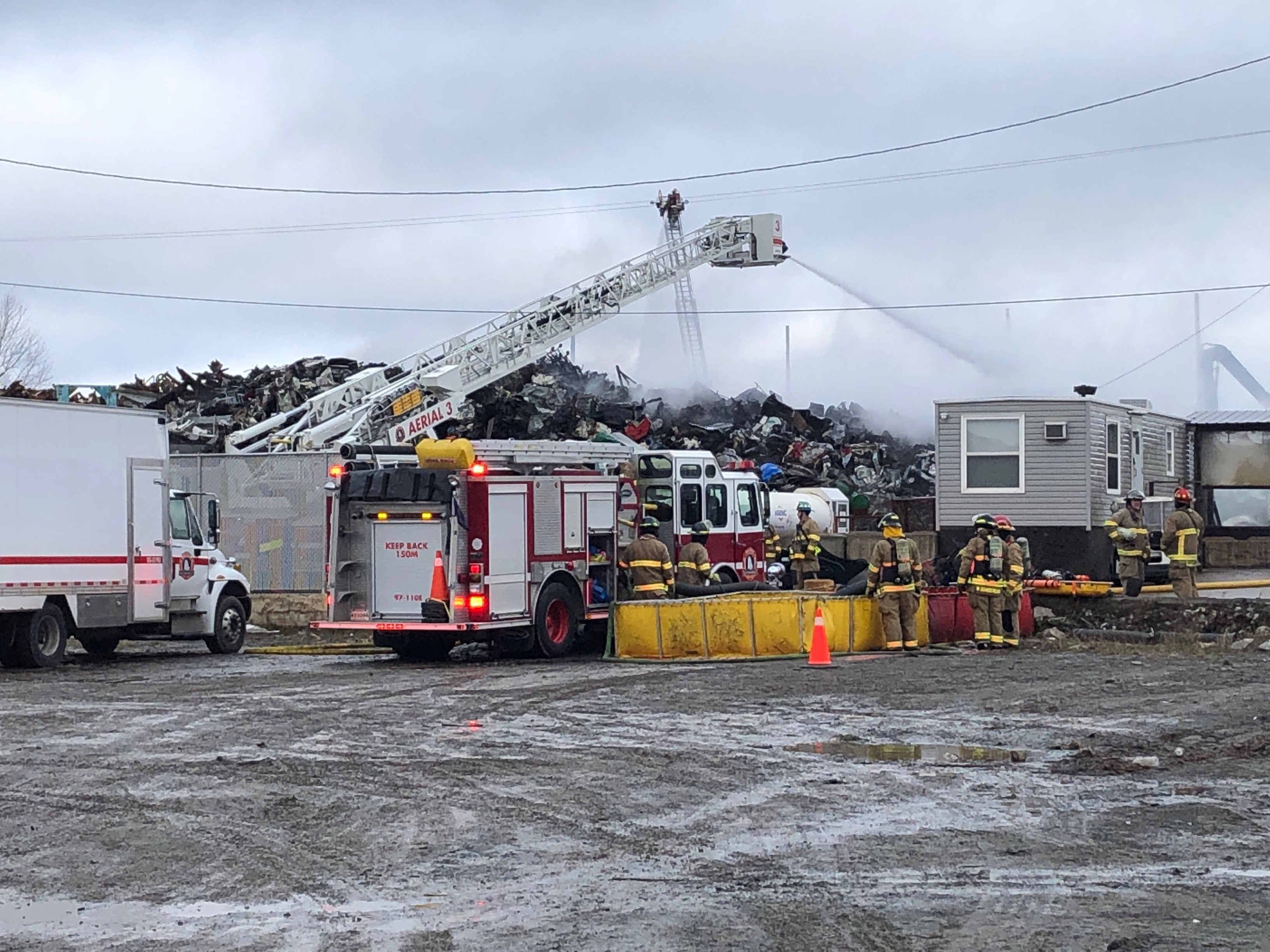 Dozens of Halifax firefighters worked to get a fire under control after a blaze broke out at a scrap metal yard in Goodwood Saturday morning.