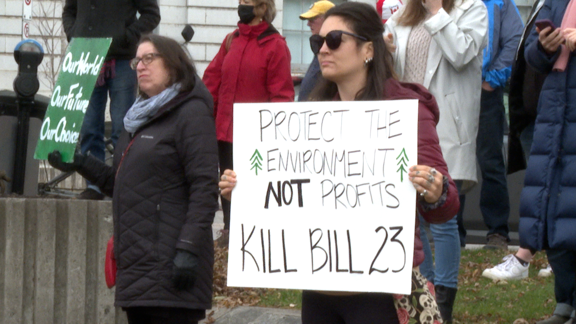 Environmental activists, among them the founder of Turtles Kingston, Mabyn Armstrong, gathered Sunday morning in Confederation Park, along with local politicians and citizens, to voice their displeasure with Bill 23.