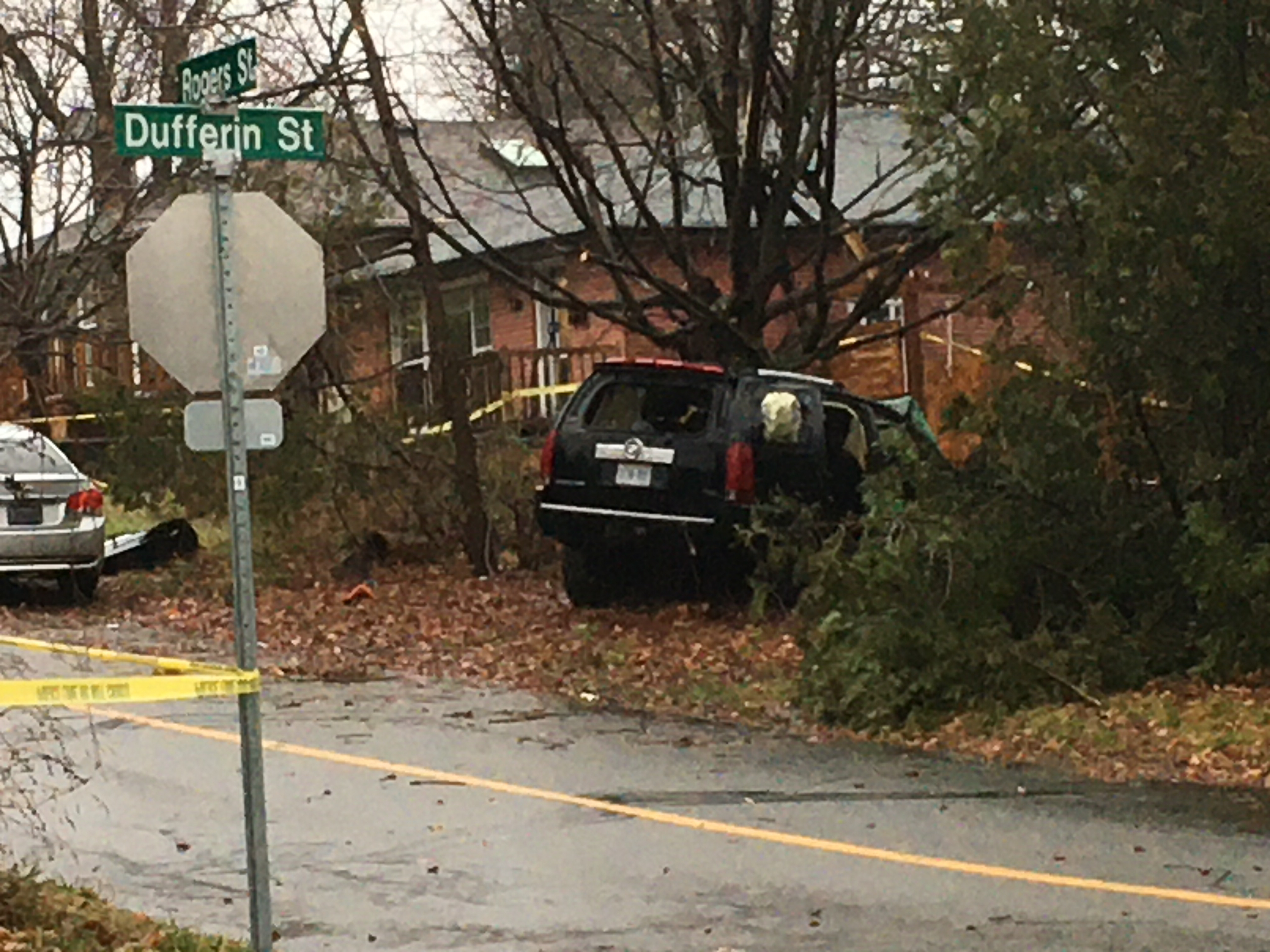 According to the Peterborough Police Service, around 2 a.m., a vehicle struck a tree at the entrance to the park near Armour Road and Rogers Street.