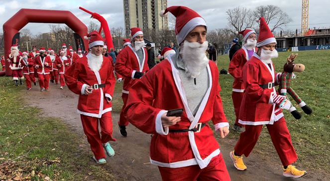 Your eyes weren’t playing tricks on you, there really were dozens of Santa Claus‘ running around Quinpool Road Saturday morning.