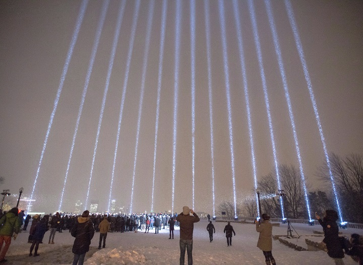 At the end of the day — at 5:10 p.m., marking the time the first shots were fired — 14 beams illuminated the sky above Mount Royal in memory of the women who lost their lives. Dignitaries including Prime Minister Justin Trudeau and Quebec Premier François Legault were scheduled to attend.