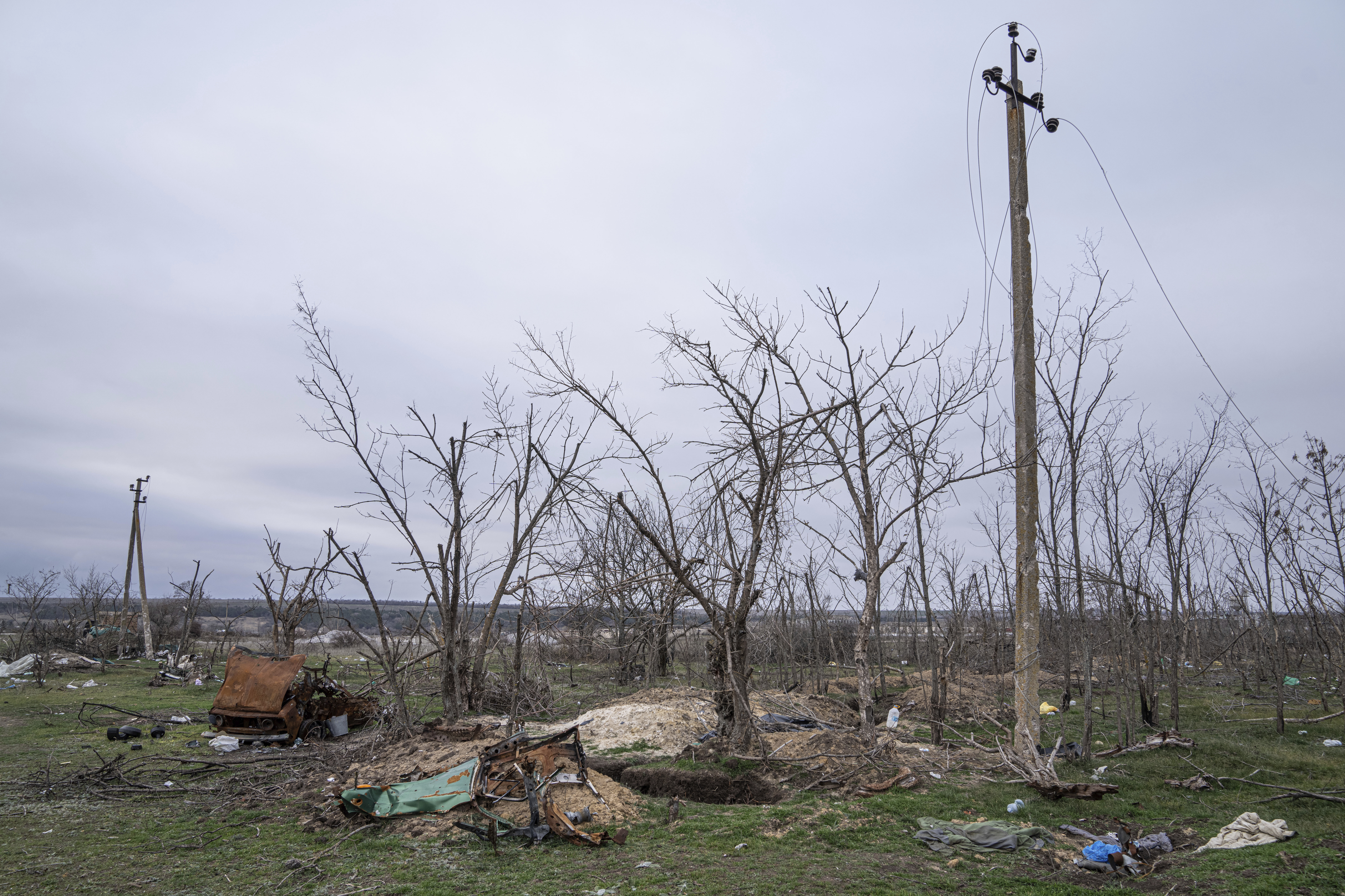 The southern city and its surrounding region have come under frequent attack since the Russian pullback. Regional governor Yaroslav Yanushevych said Sunday that Russia had carried out 54 attacks with rocket, mortar and tank fire over the previous day, killing three people and wounding six.