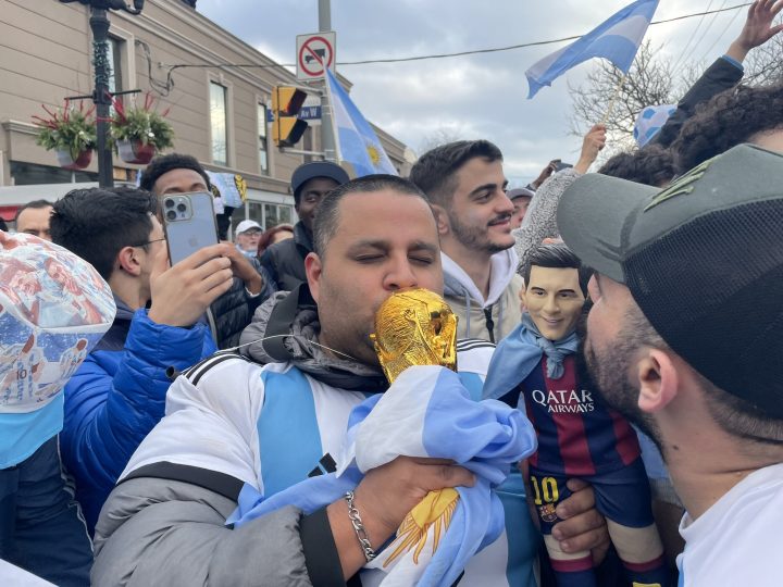 At Cafe Diplomatico in Toronto’s Little Italy neighbourhood, fans in a packed tent screamed and jumped up when Argentina took the title, hugging each other and waving flags. Music filled the tent and fans danced in celebration, with many screaming Messi’s name.